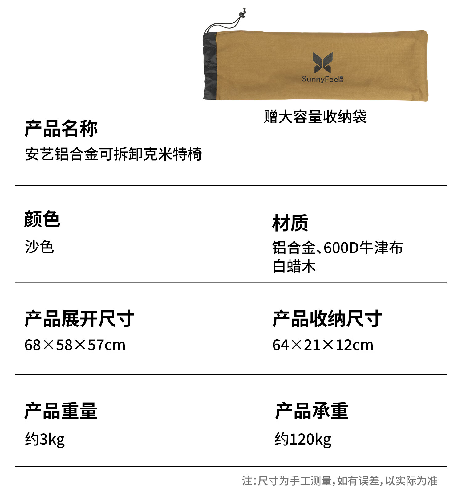 山扉户外可拆卸椅露营椅子铝合金克米特野营椅便携式折叠椅子凳子 沙石色【全铝合金/可拆卸支架】安艺·铝合金克米特椅