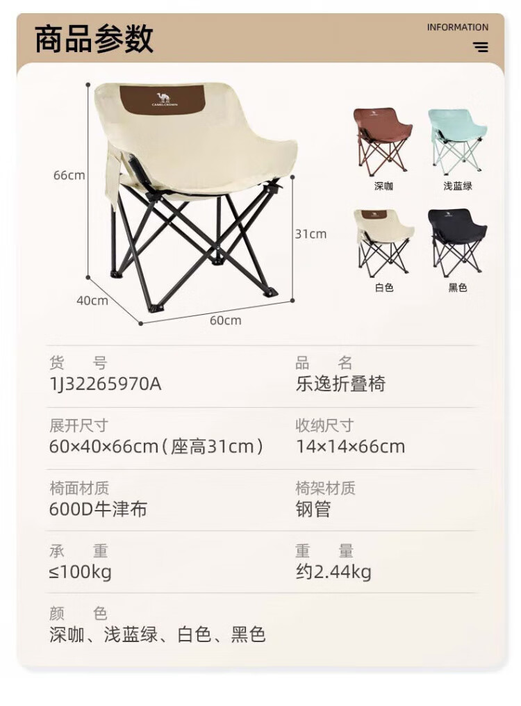 骆驼露营椅子非常棒,买了两个了,很喜欢。不错不错。