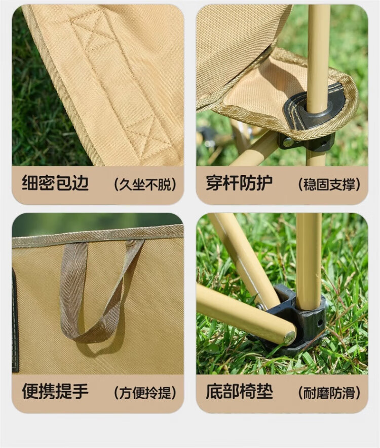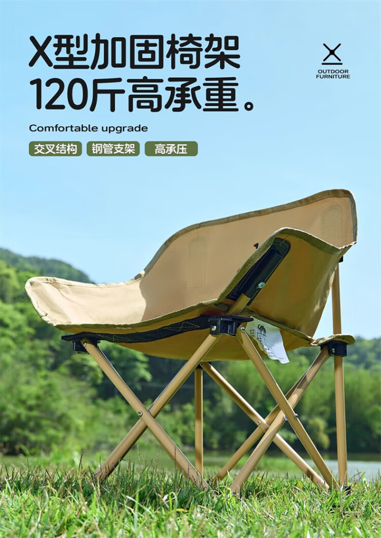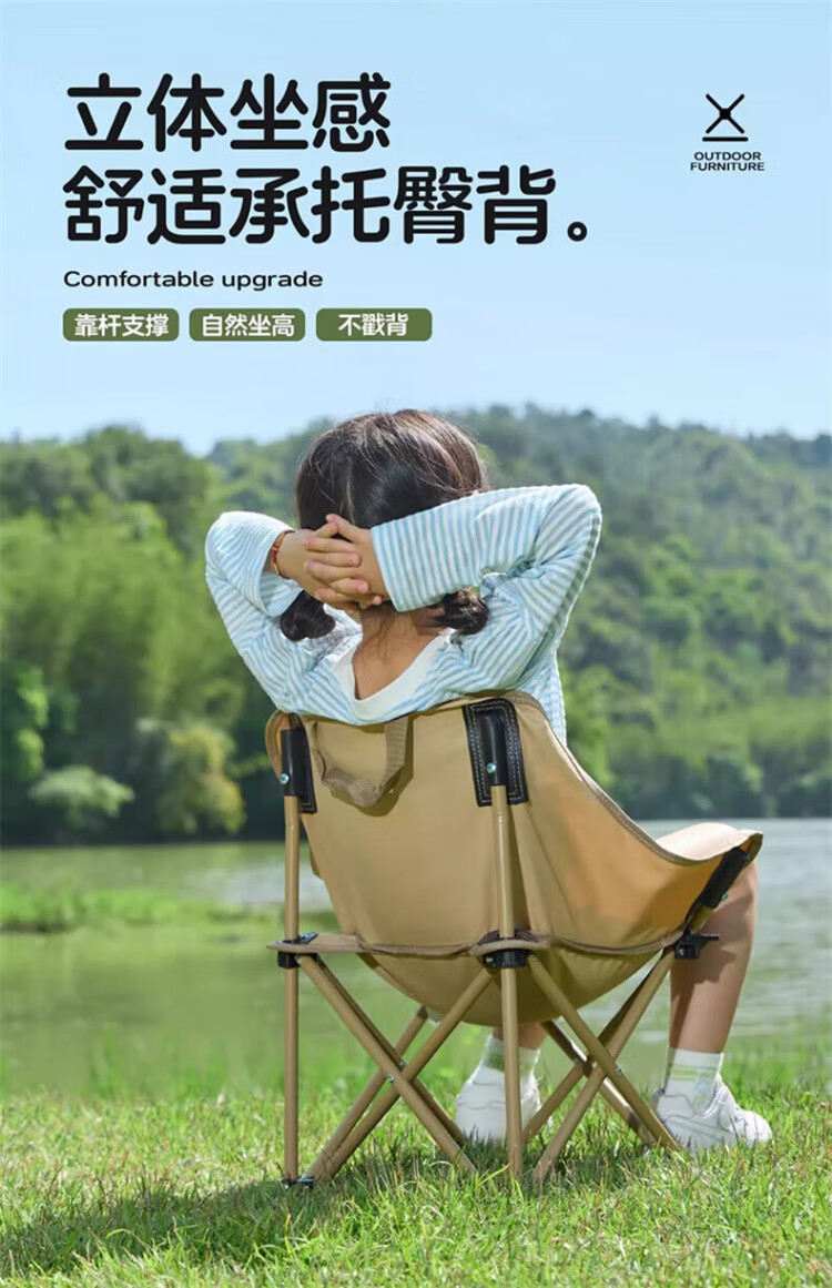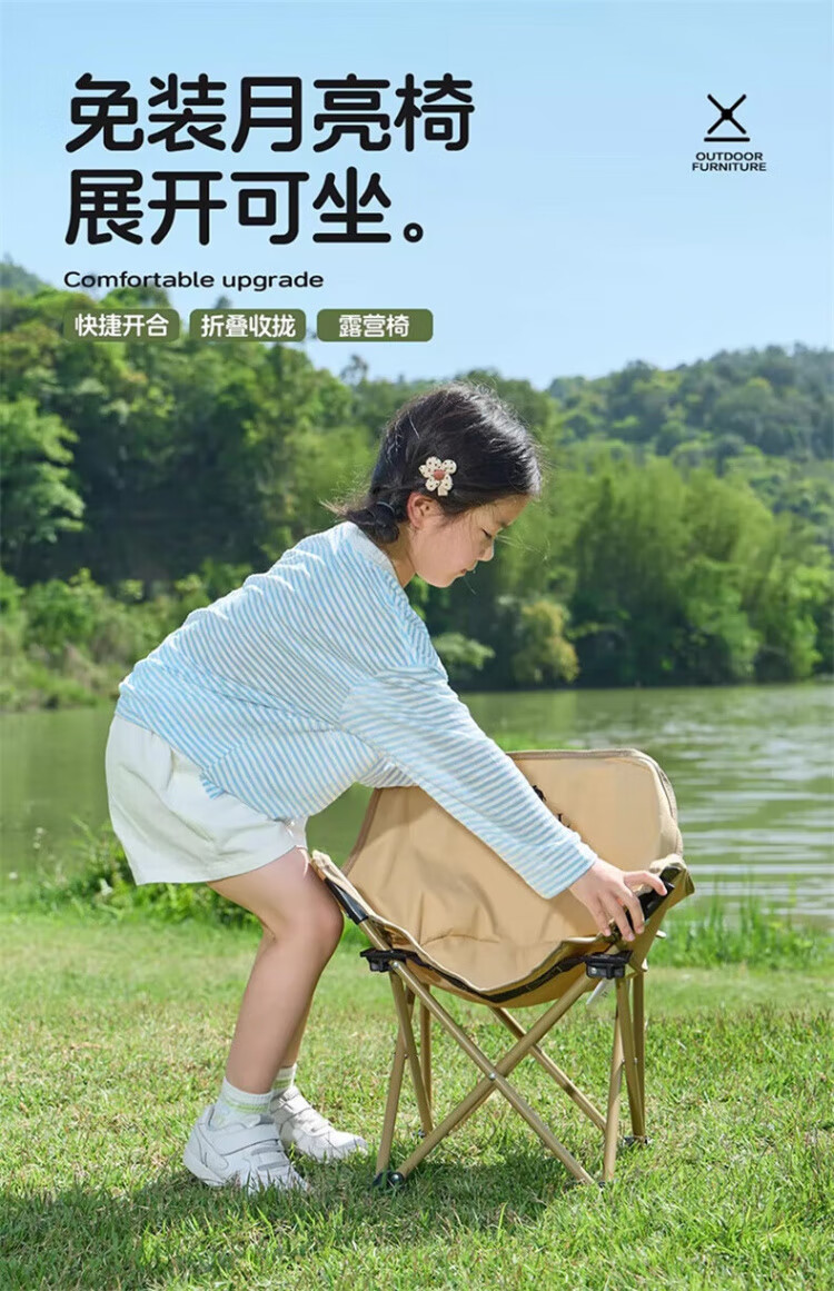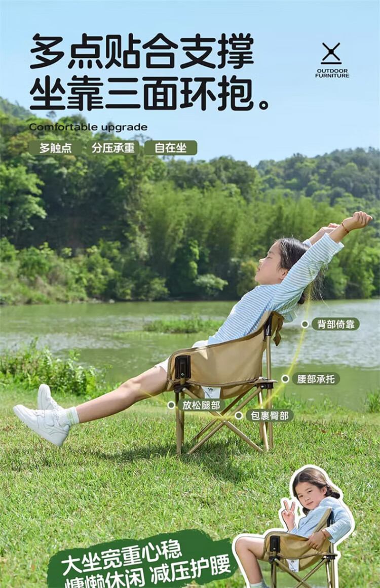 原始人户外折叠椅露营椅子躺椅便携折叠月亮椅小凳子折叠凳钓鱼凳 儿童软包专定卡其