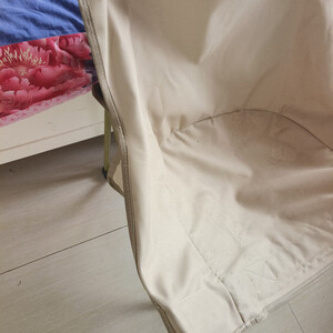 有些许线头,颜色如图,茵茵一抹草绿,在一众米色中脱颖而出。易收纳,不重,2岁宝宝喜欢用,成人女性110斤也能坐下