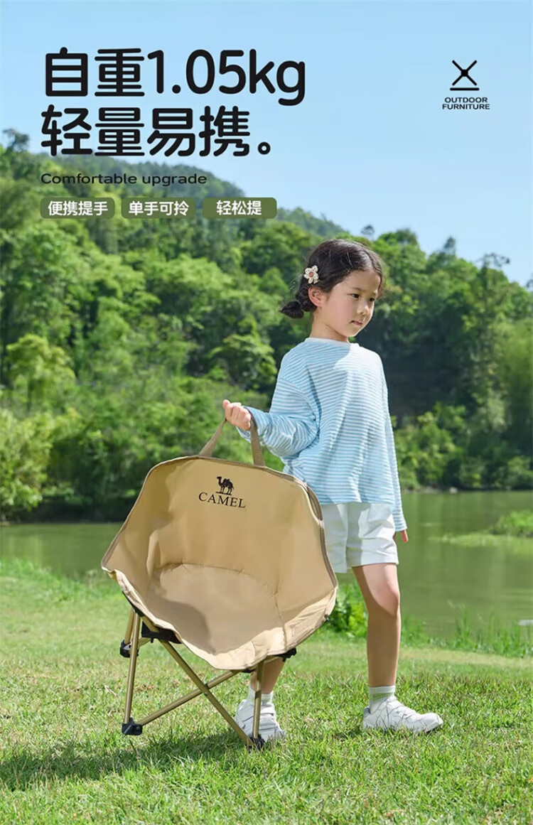 骆驼(CAMEL)户外露营折叠椅便携式靠背钓鱼凳子导演椅沙滩躺椅懒人月亮椅 【儿童款】冬竹青174BL03626