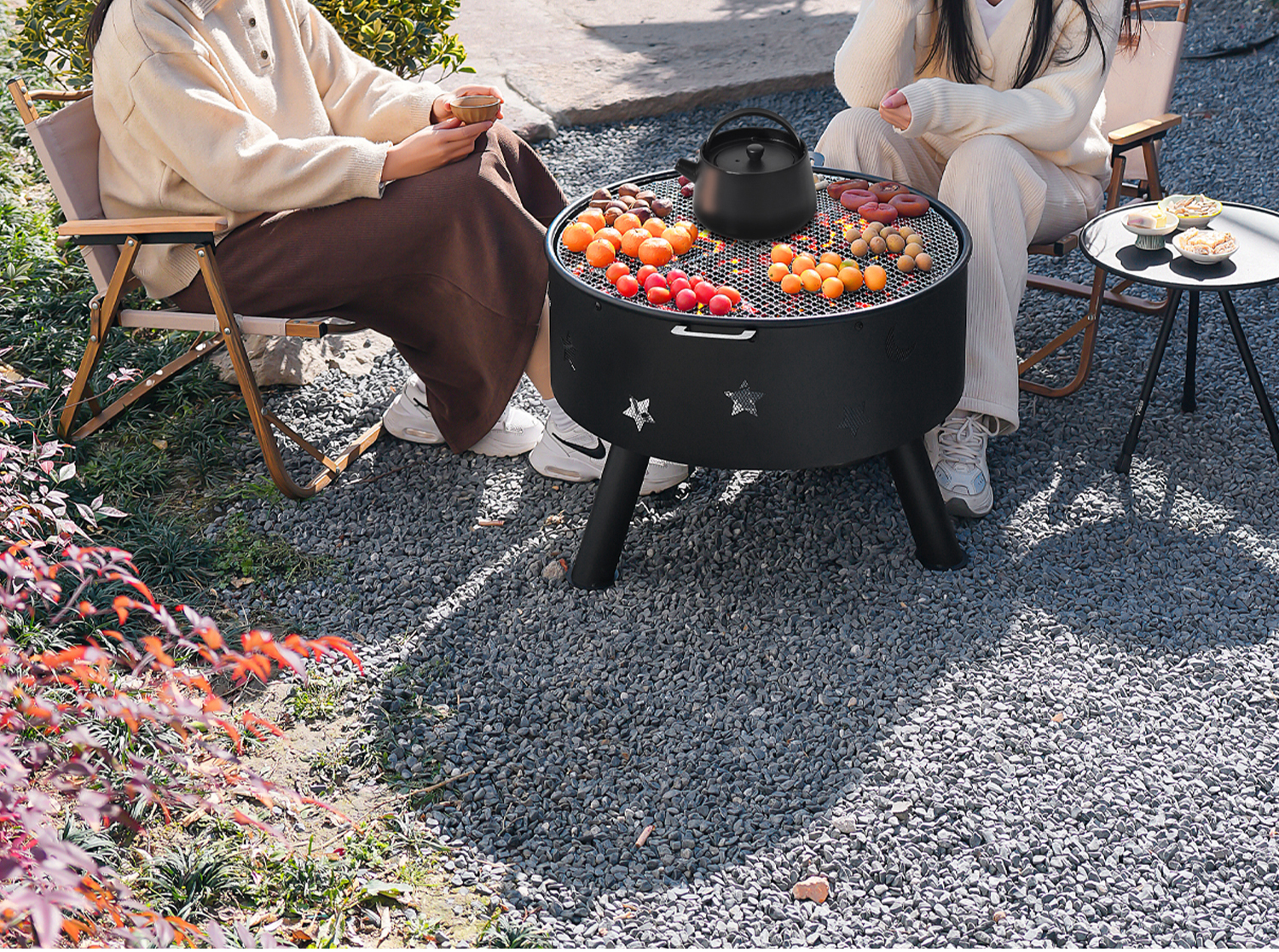 原始人烤火炉烤火盆烧烤架户外取暖炉室内烧烤炉家用碳炭围炉煮茶 围炉+304烤网+收纳包