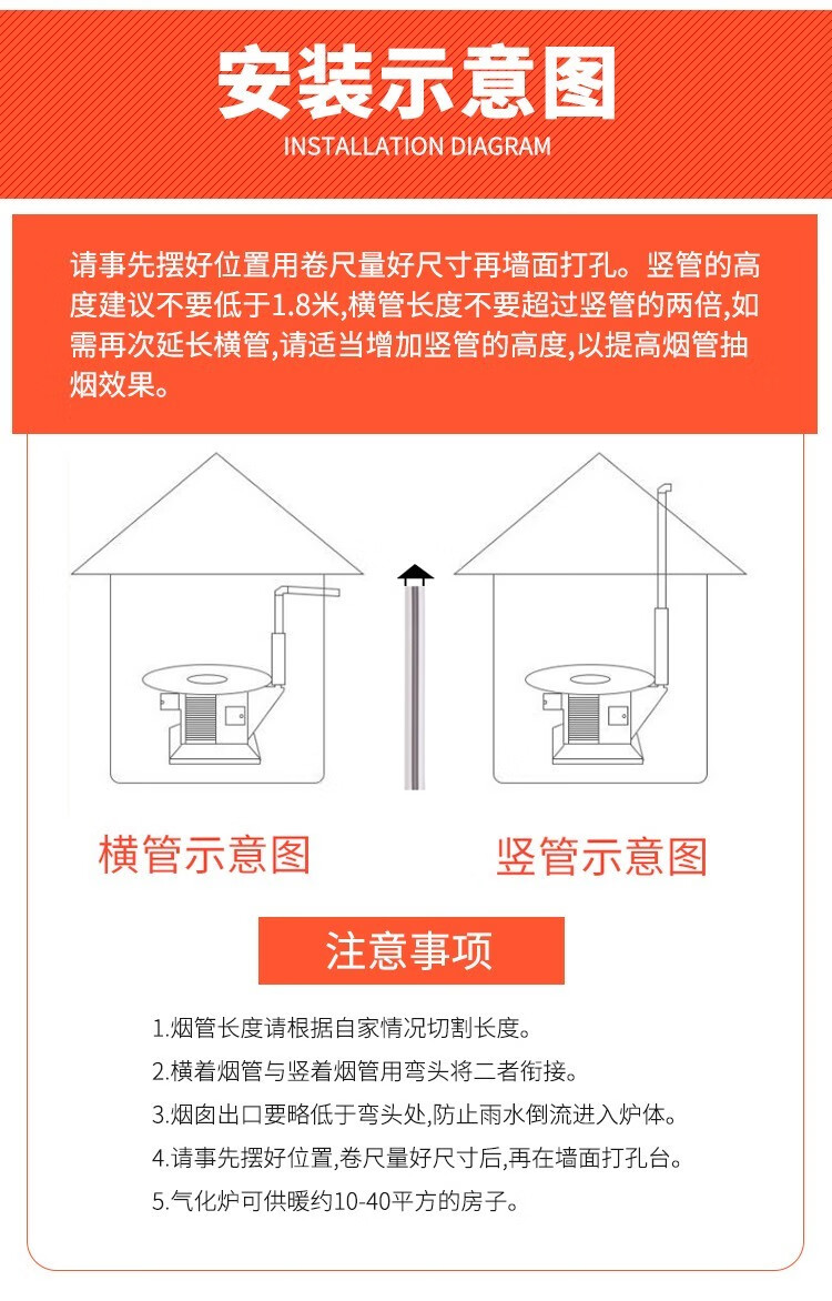亿骁(YIXIAO)气化炉农村高端烤火炉家用取暖炉烧煤烧柴无烟柴炉柴煤两用炉供暖 0.8米不锈钢气化炉柴煤两用