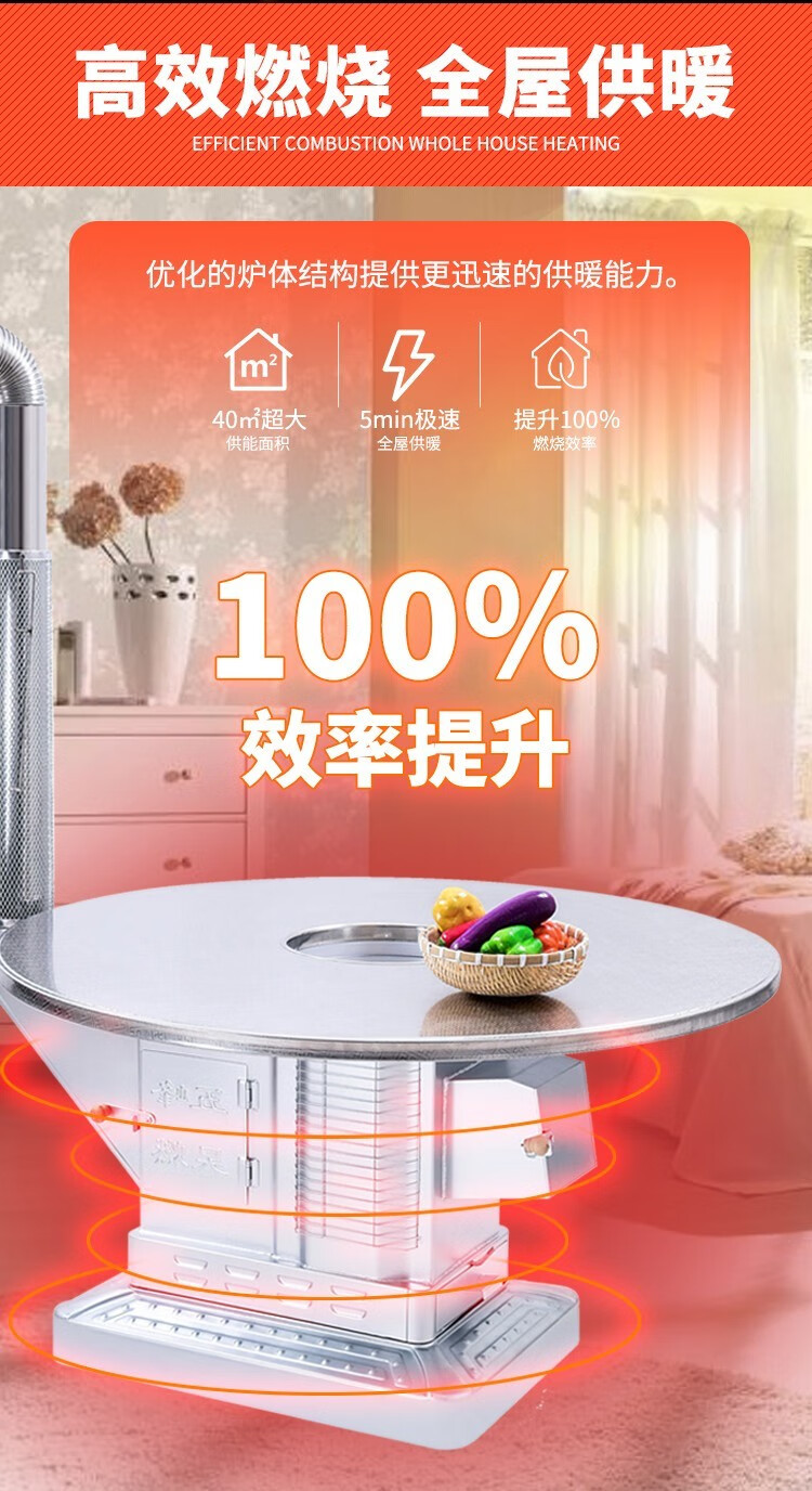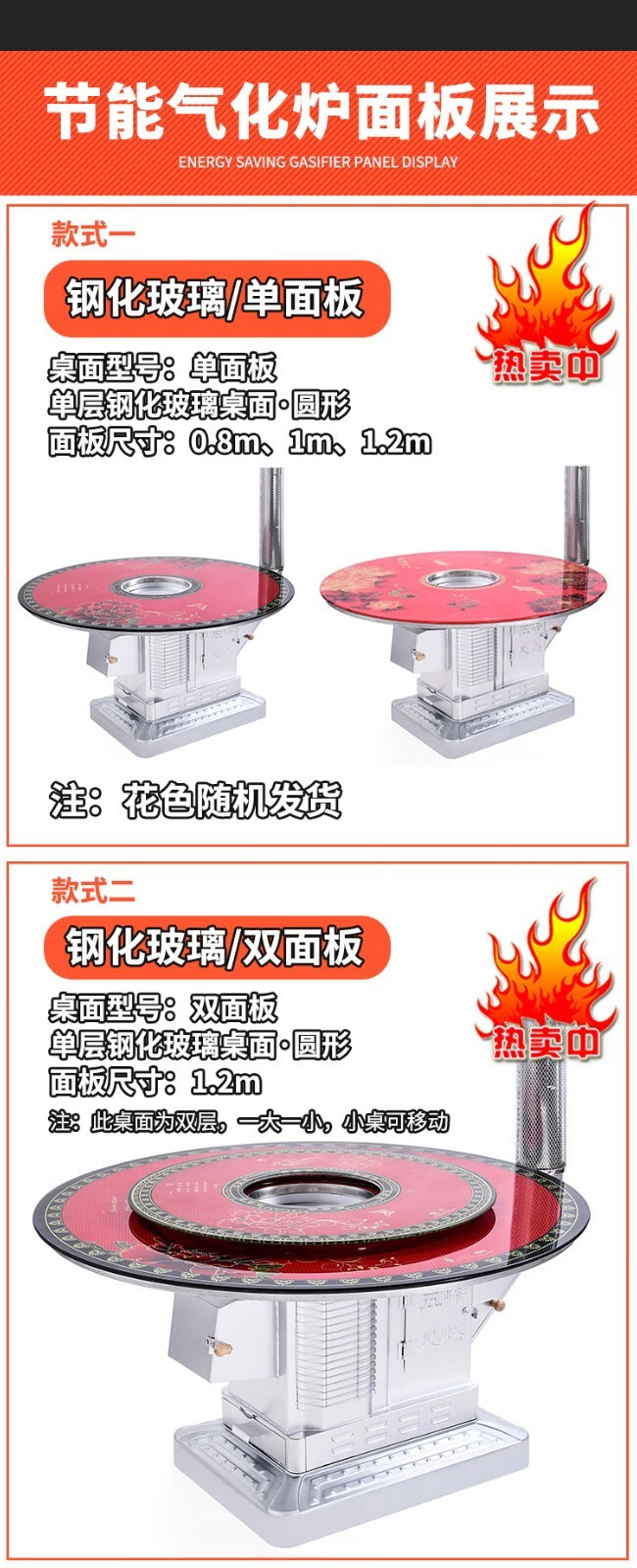 【送货上门】昊燃·取暖炉农村冬季新款气化炉室内烤火 加厚柴煤两用多功能转盘节能无烟采暖炉回风炉 1米加厚防爆玻璃单桌面 (柴煤两用)