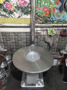 璞灶旺冬季柴火灶加厚加高农村取暖炉烧柴家用节能柴煤两用多功能回风炉 1米圆桌不锈钢(柴火炉)