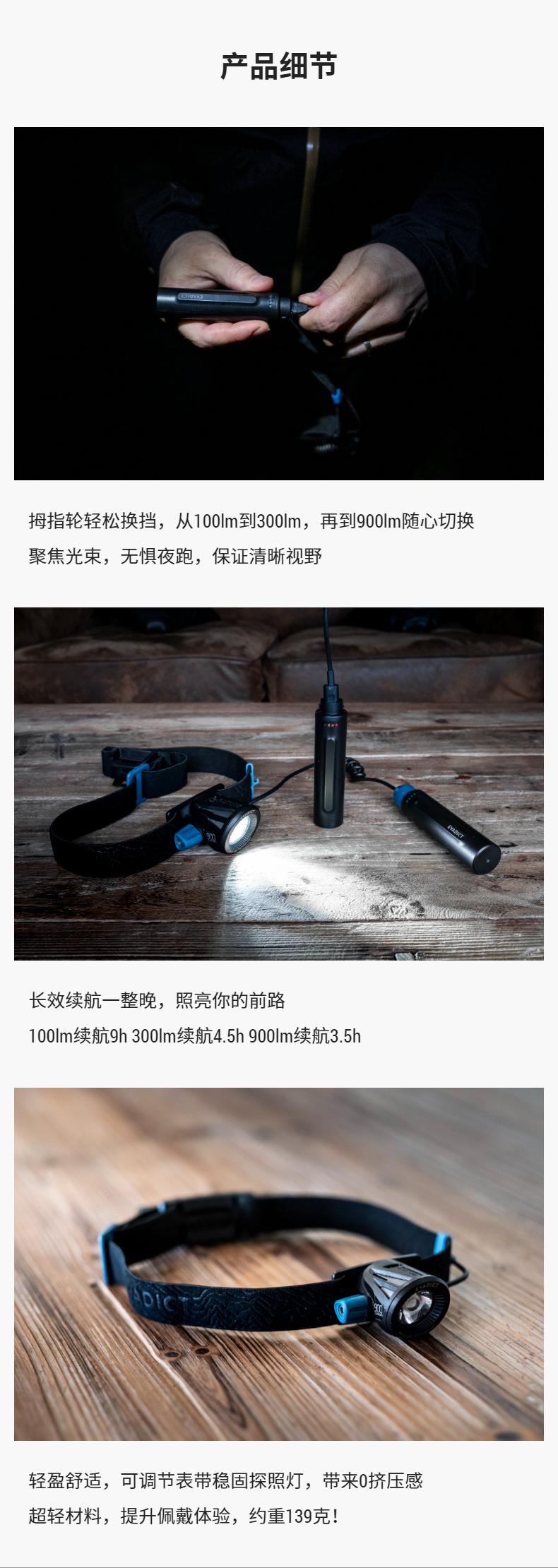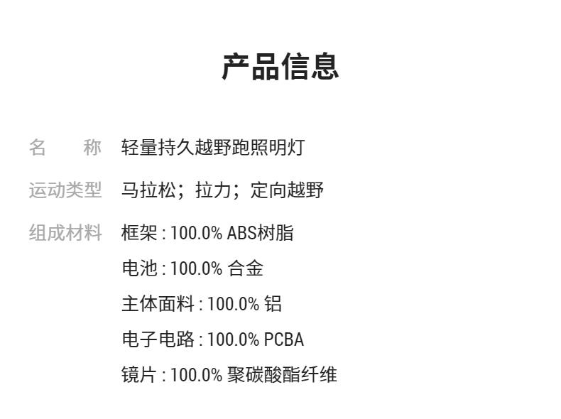 这一款迪卡侬usb头灯,2300毫安,下雨也不用怕,防水比较好,这样头灯性价比很高,轻量化,在户外晚上还是很方便。 产品材质:塑料 光照强度:越野跑够用 续航时间:4小时左右 产品重量:很轻 电源类型:充电