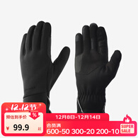 迪卡侬手套成人触屏户外保暖防风骑车滑雪MT500触感徒步手套 黑色 XL