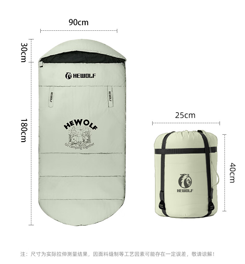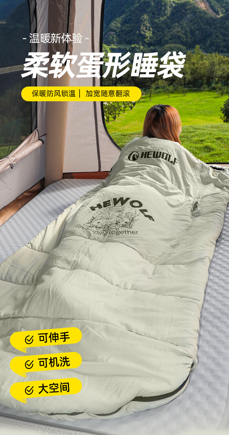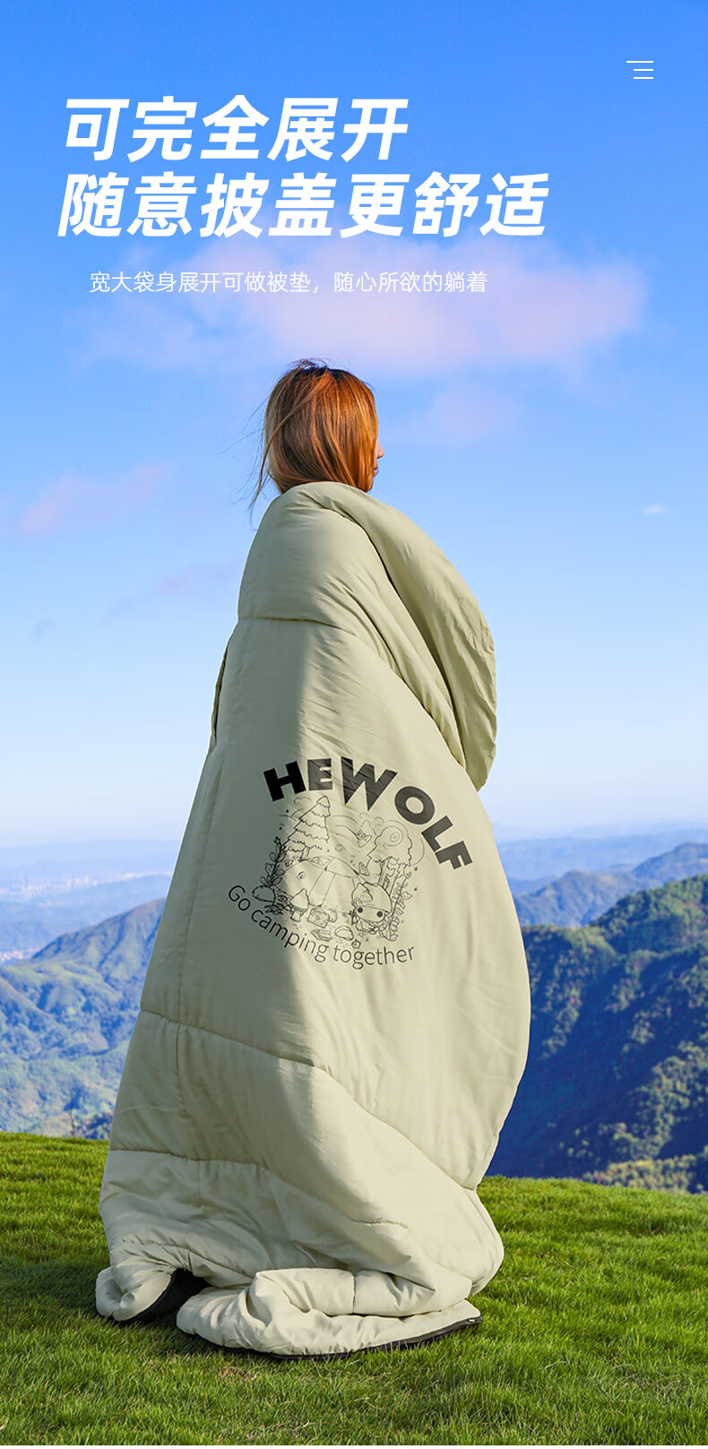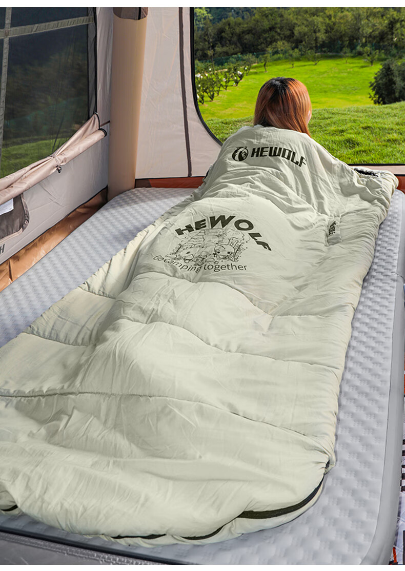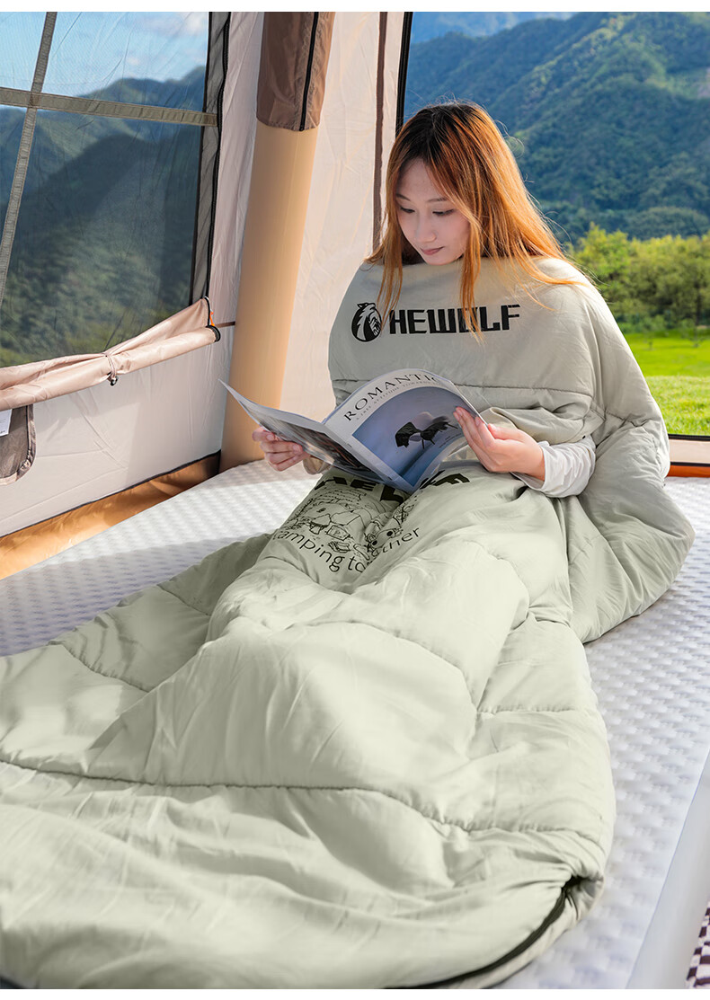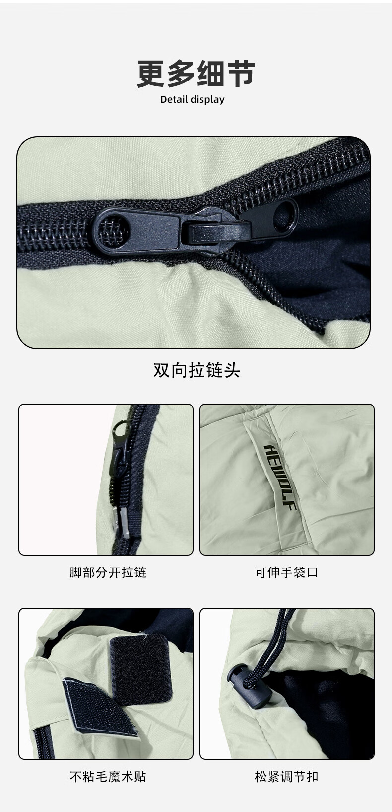 公狼睡袋冬季加厚防寒加宽单人成人秋冬天户外办公室午休加宽车载露营 2.2kg-银灰绿-超柔软蓬松大豆棉