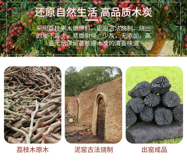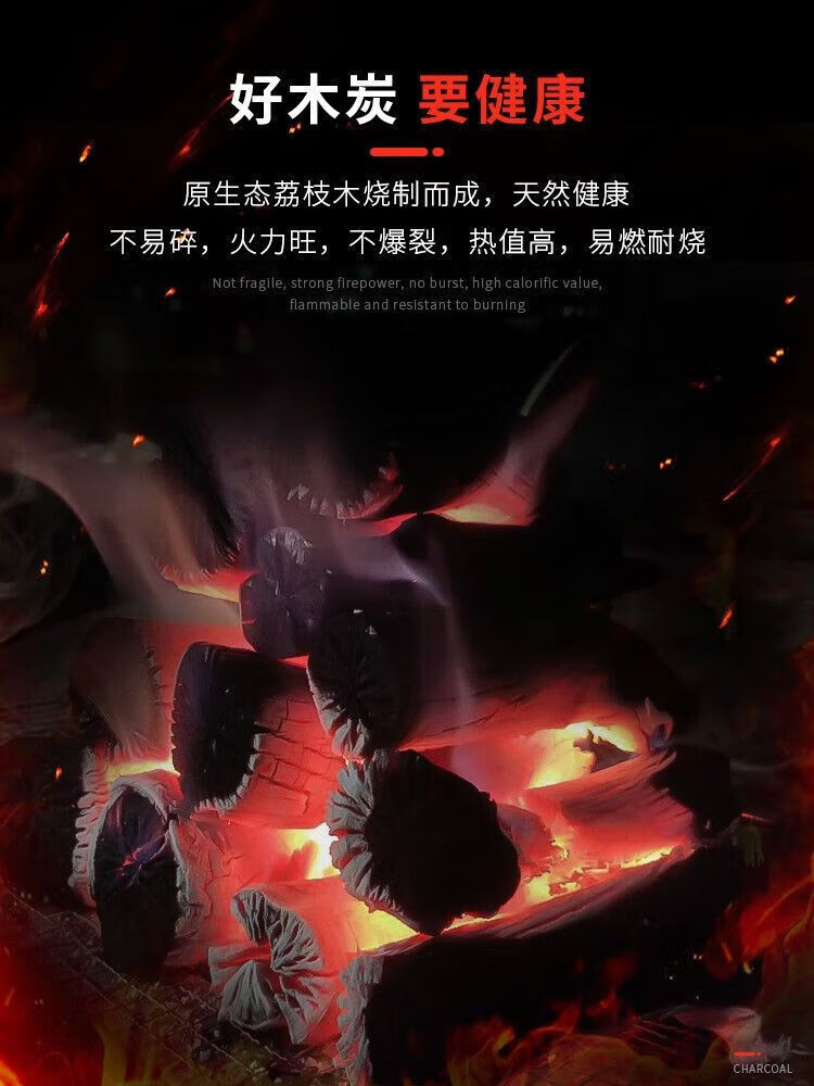果木炭烧烤碳块速燃无烟荔枝木炭高温耐烧火锅烤炉家用商用批发主 3斤荔枝树小块炭+引燃块