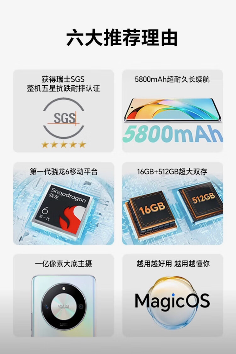 荣耀X50 第一代骁龙6芯片 1.5K超清护眼硬核屏 5800mAh超耐久大电池 雨后初晴 12GB+256GB 单机+第三方品牌快充+店保1年