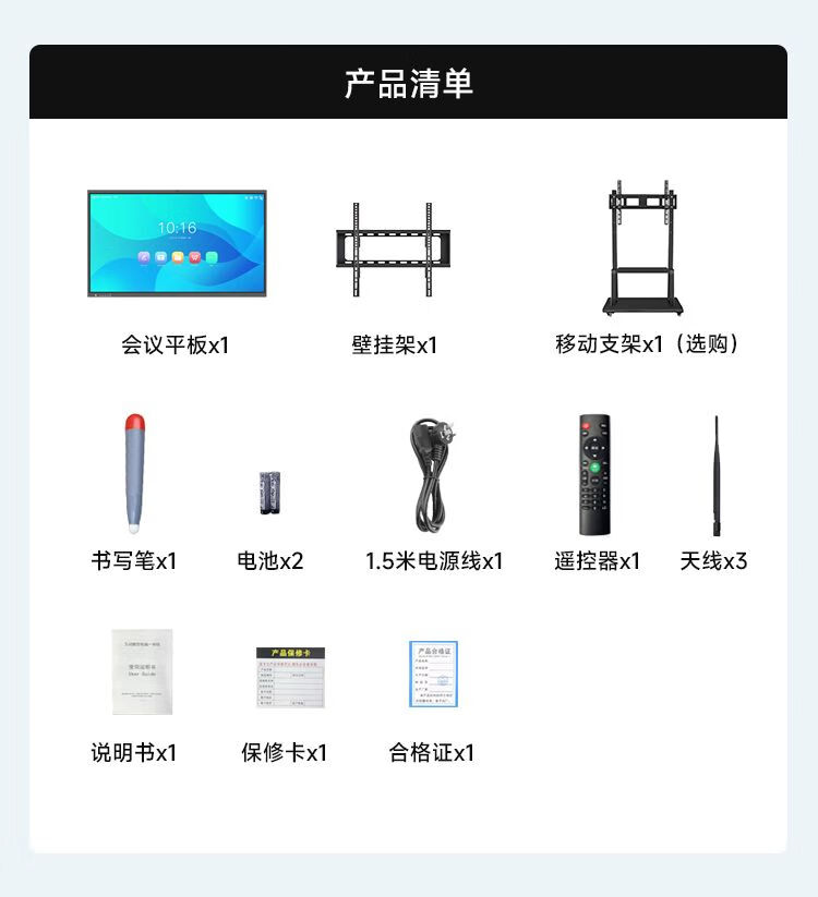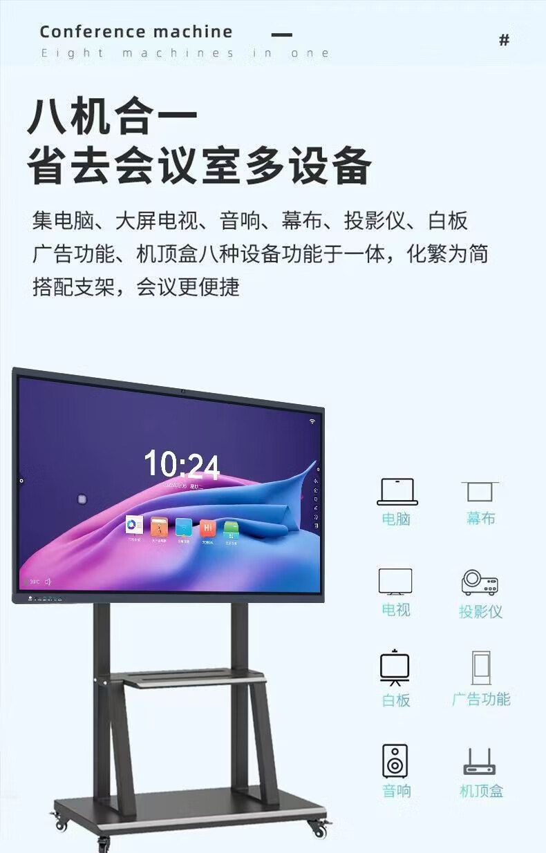 会议一体机视频会议平板多媒体教学一体机触摸屏电脑智能互动电子白板 会议触控大屏100寸 86寸会议一体机 安卓系统+推车