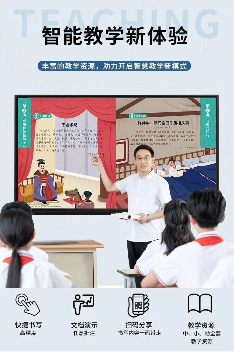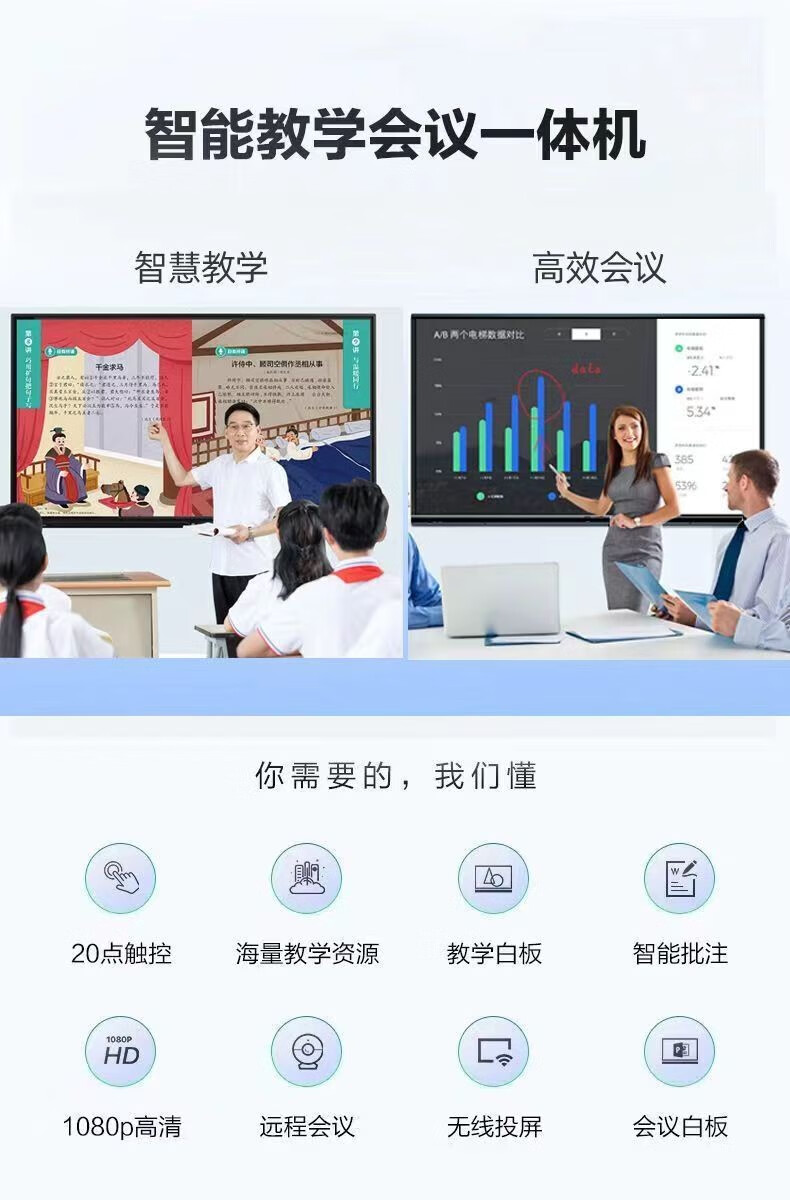 会议培训一体机平板电视屏超清多媒体教学一体机触摸控屏无线投屏显示器会议室手写电子白板学校家用幼教学机 55英寸教学会议机【护眼带蓝牙】+壁挂架 安卓13.0【4G+32G】