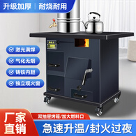火班长农村烤火炉冬季取暖桌柴火炉灶家用高端无烟回风炉柴煤两用气化炉 [巨厚气化炉]3mm厚1.2米黑钛不锈钢平转桌面
