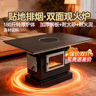 璞灶旺回风炉农村家用取暖柴火炉煤火炉柴煤两用炉多功能烤火桌节能取暖 0.8米钢化玻璃桌面 柴煤两用炉