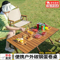 梵昇昱蛋卷桌户外桌椅折叠桌露营桌子稳固轻量便携式野餐装备 90款胡桃色蛋卷桌【2-4人】