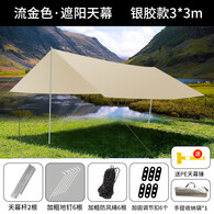 智宙天幕帐篷黑胶户外露营野餐防晒防雨便携式野营炊布遮阳 //.银胶(流金色3*3M)送锤子