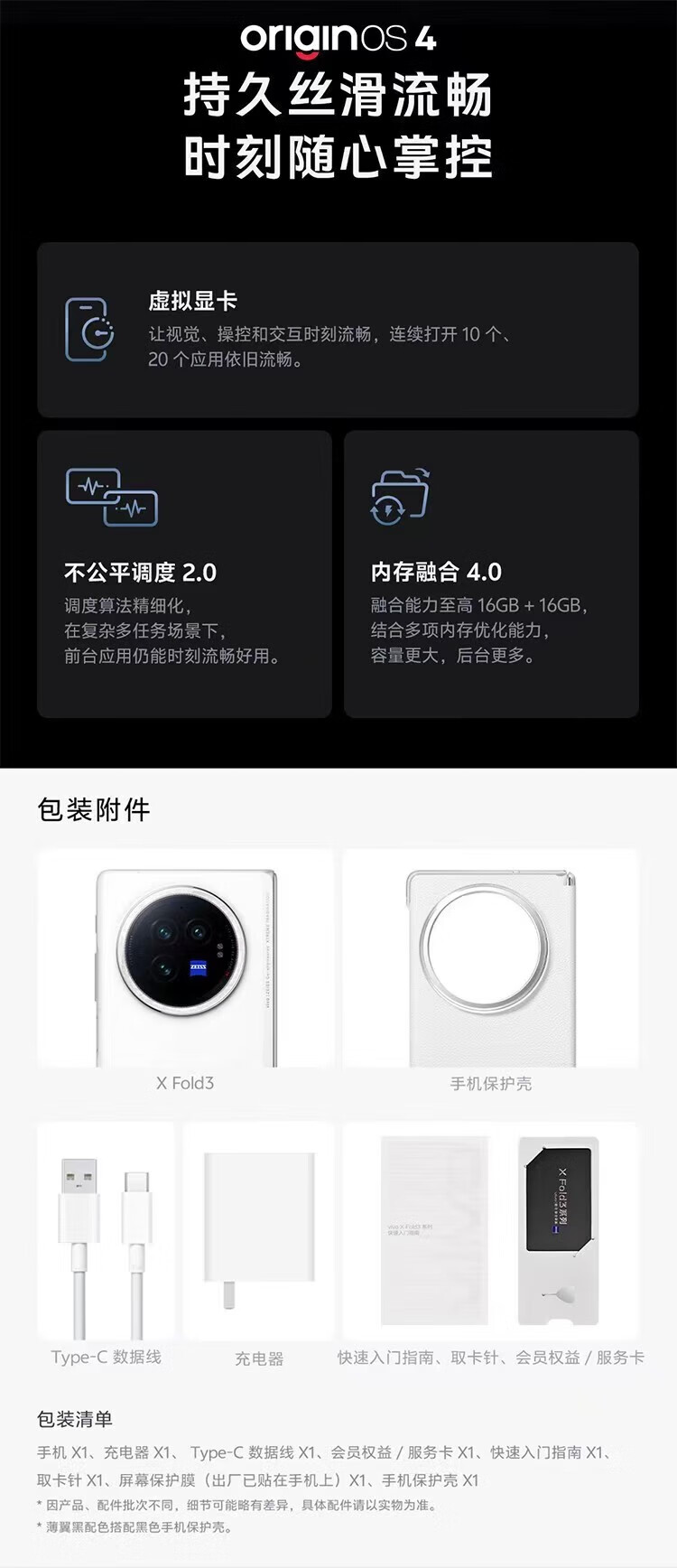 vivoX Fold3【全新未拆封未激活+全国联保】 5500mAh蓝海电池 超可靠铠羽架构 超轻薄 折叠屏 AI 手机 薄翼黑 16GB+512GB