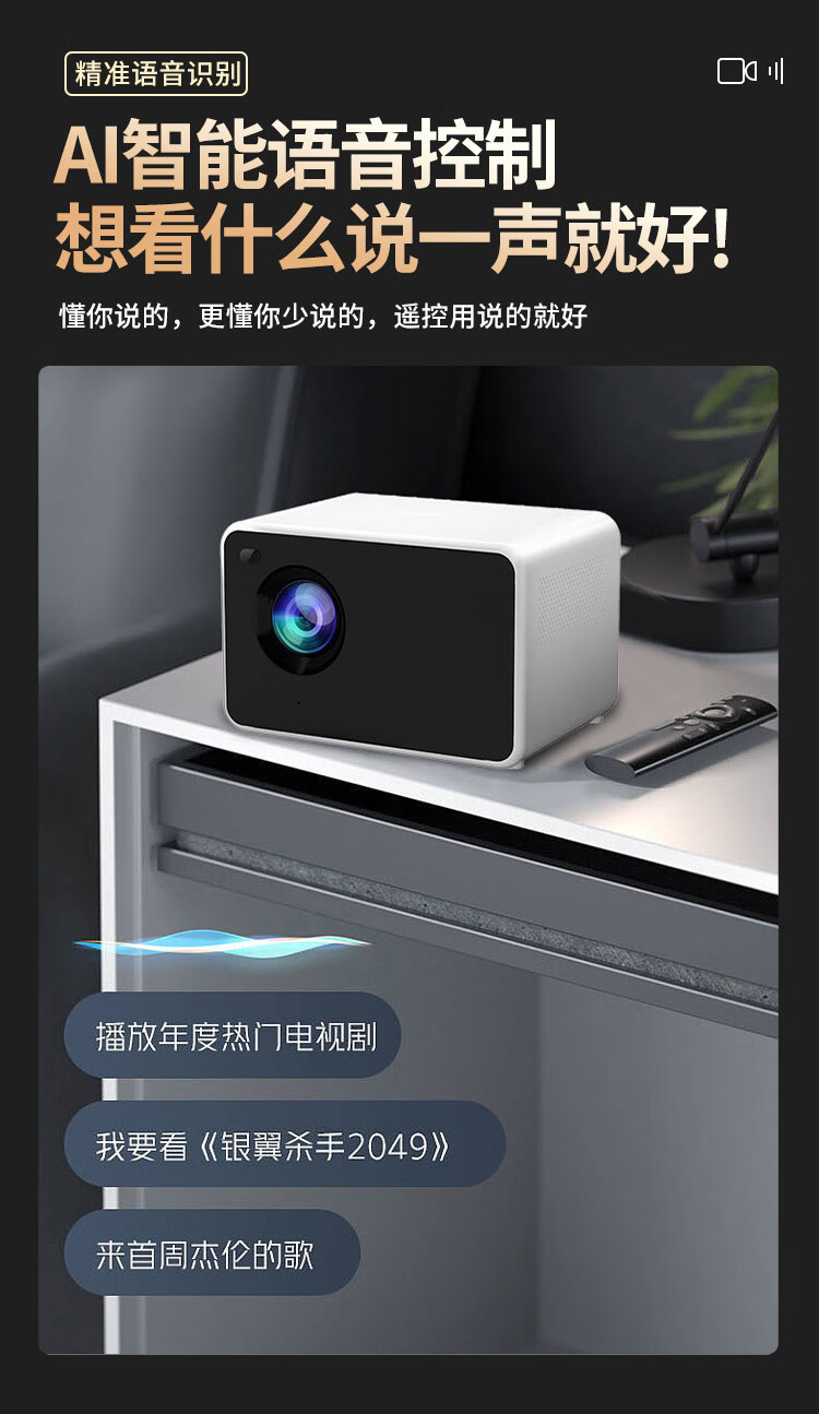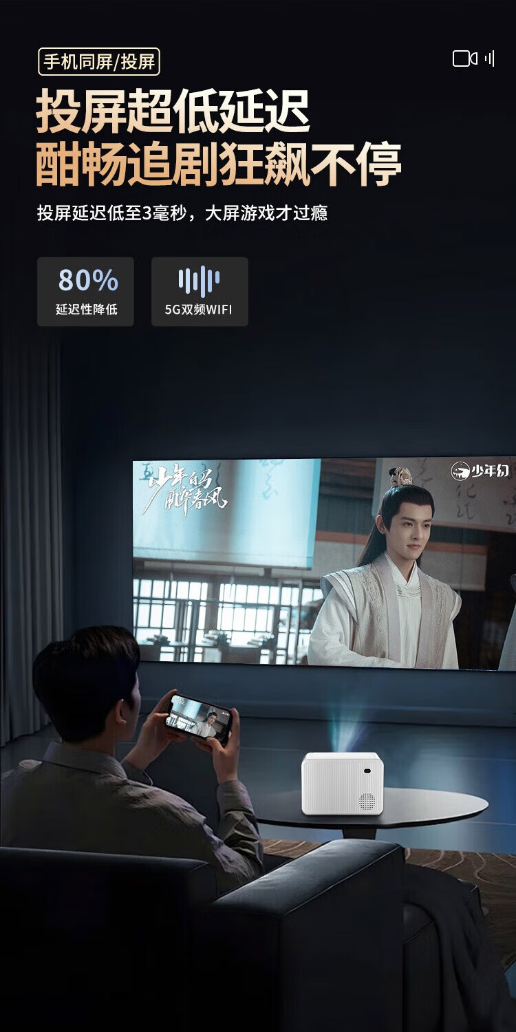 HKMW华为机HUAWEl适用新款投影仪家用超高清投屏家庭影院卧室客厅投墙手机小型宿舍学生办公用会议短 语音版【AI语音+HDMI接口+电动对焦+HIFI