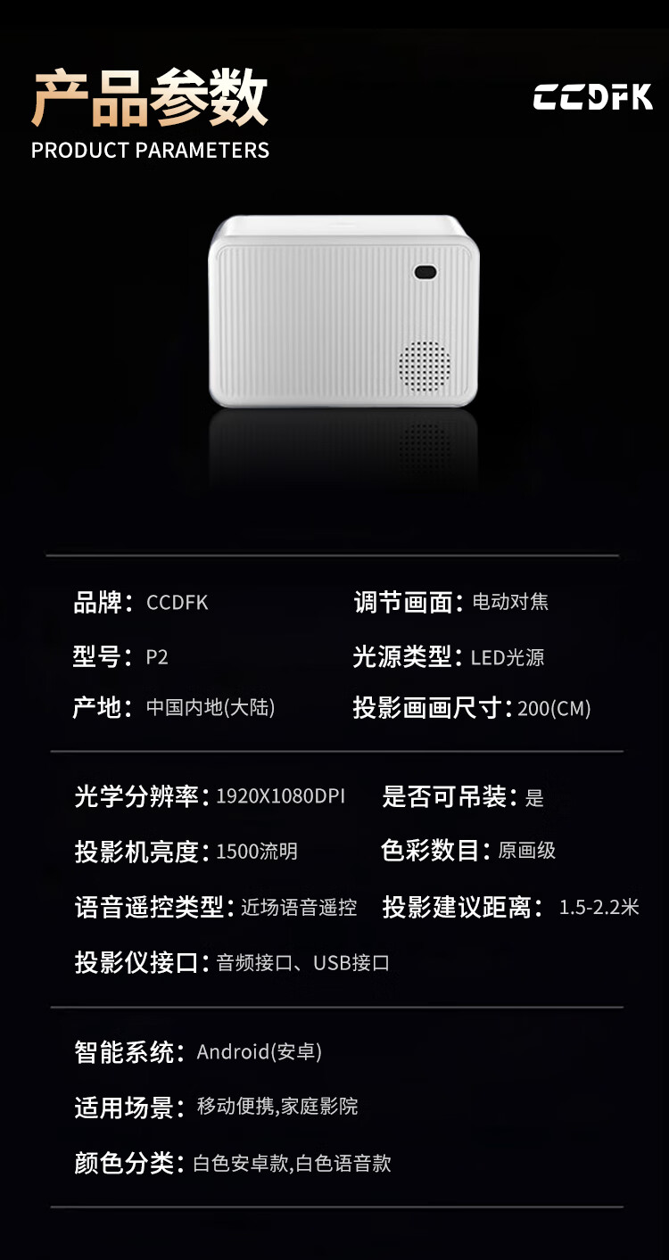 CCDFK.智萤投影仪P2超高清云台5G双频WIFI电动对焦家庭影院投影 【家庭影院超高清】-智能语音版