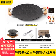 探险者(TAN XIAN ZHE)围炉煮茶烤盘烧烤盘烤肉盘韩式烤肉煎烤盘卡式炉家用麦饭石烤肉锅 33CM围炉烤肉【特大铸铁炉+炭】