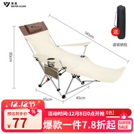 探险者户外躺椅折叠椅子可躺可睡午休椅露营便携办公室午睡椅休闲沙滩椅 米白短款-双档调节