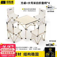 探险者露营桌户外桌椅套装折叠桌便携野餐桌蛋卷桌一桌四椅野营装备全套 【珠光白】方桌+大号折叠椅*4