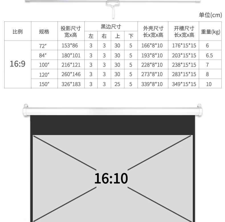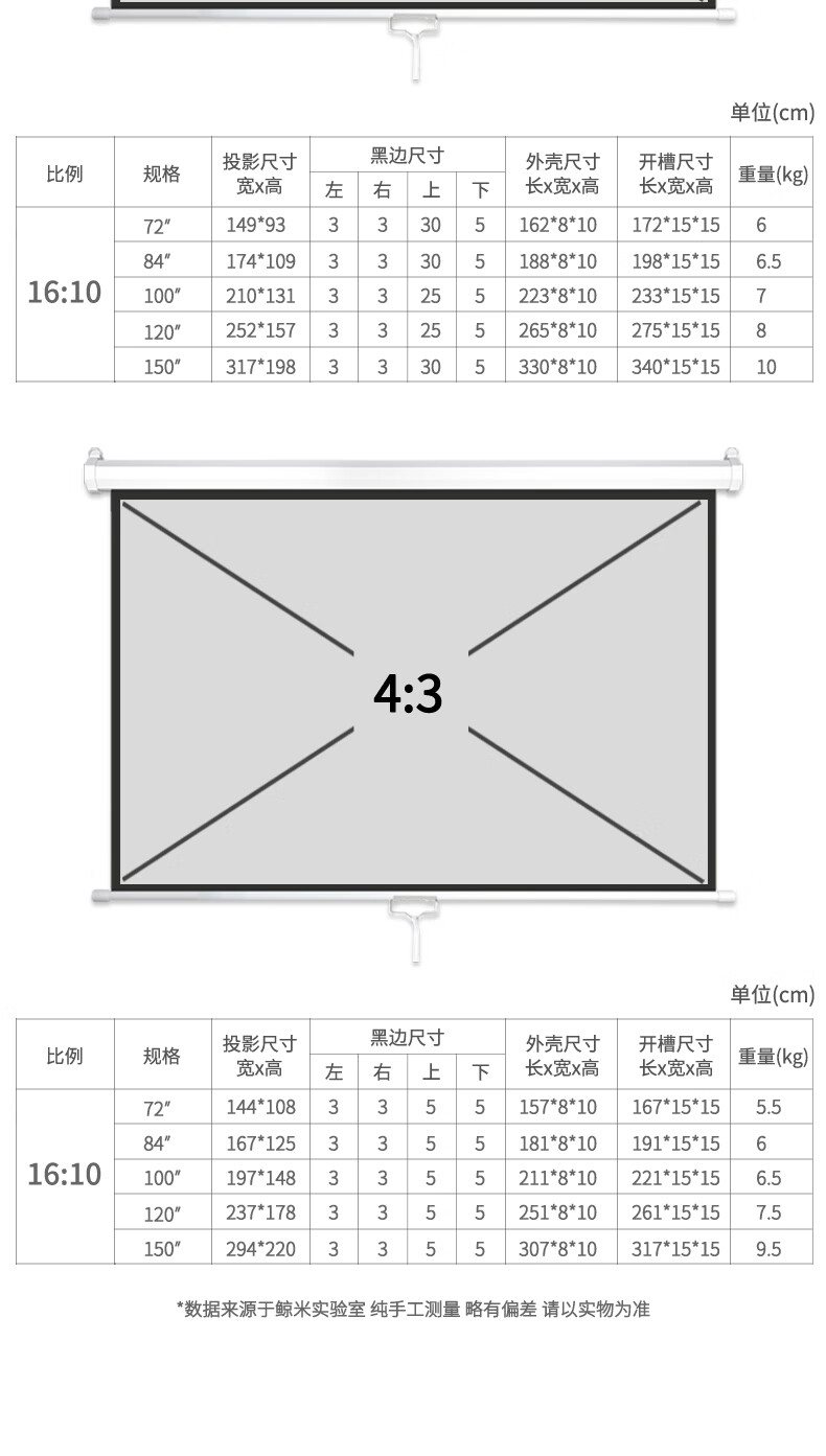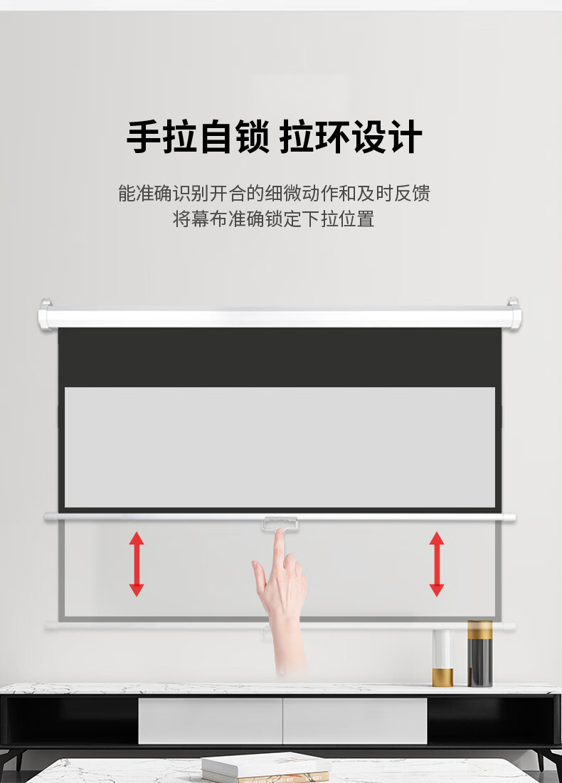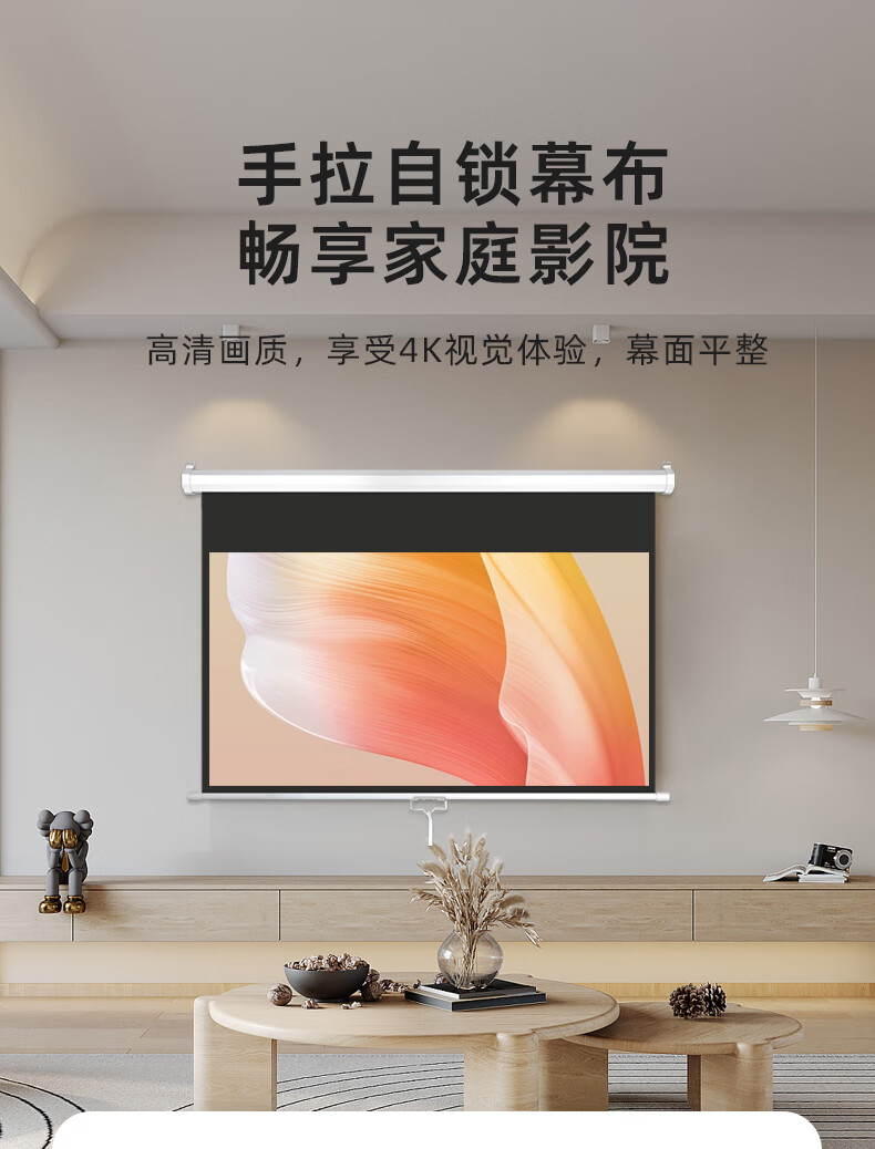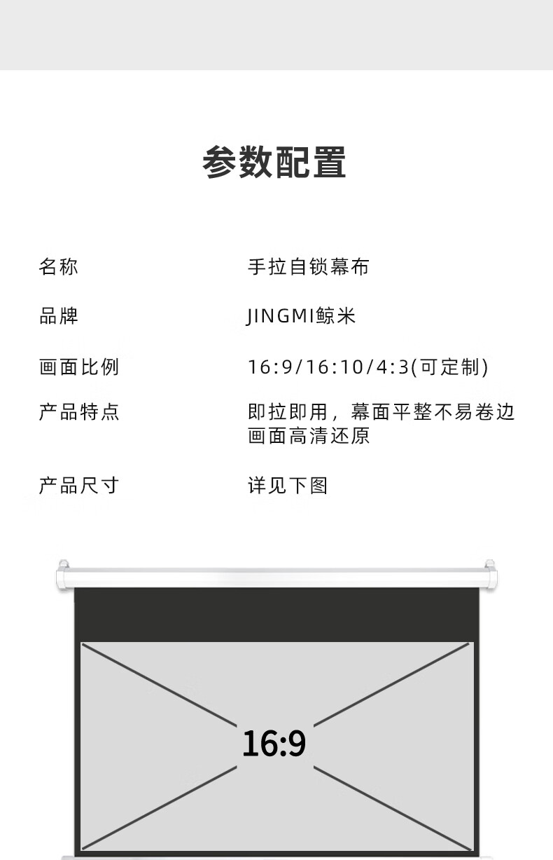 鲸米(JINGMI)手拉自锁投影幕布家用高清电影白塑白玻纤手拉升降办公家用教育培训投影仪幕布投影机屏幕 神州系丨S1白塑手拉幕 120英寸16:9