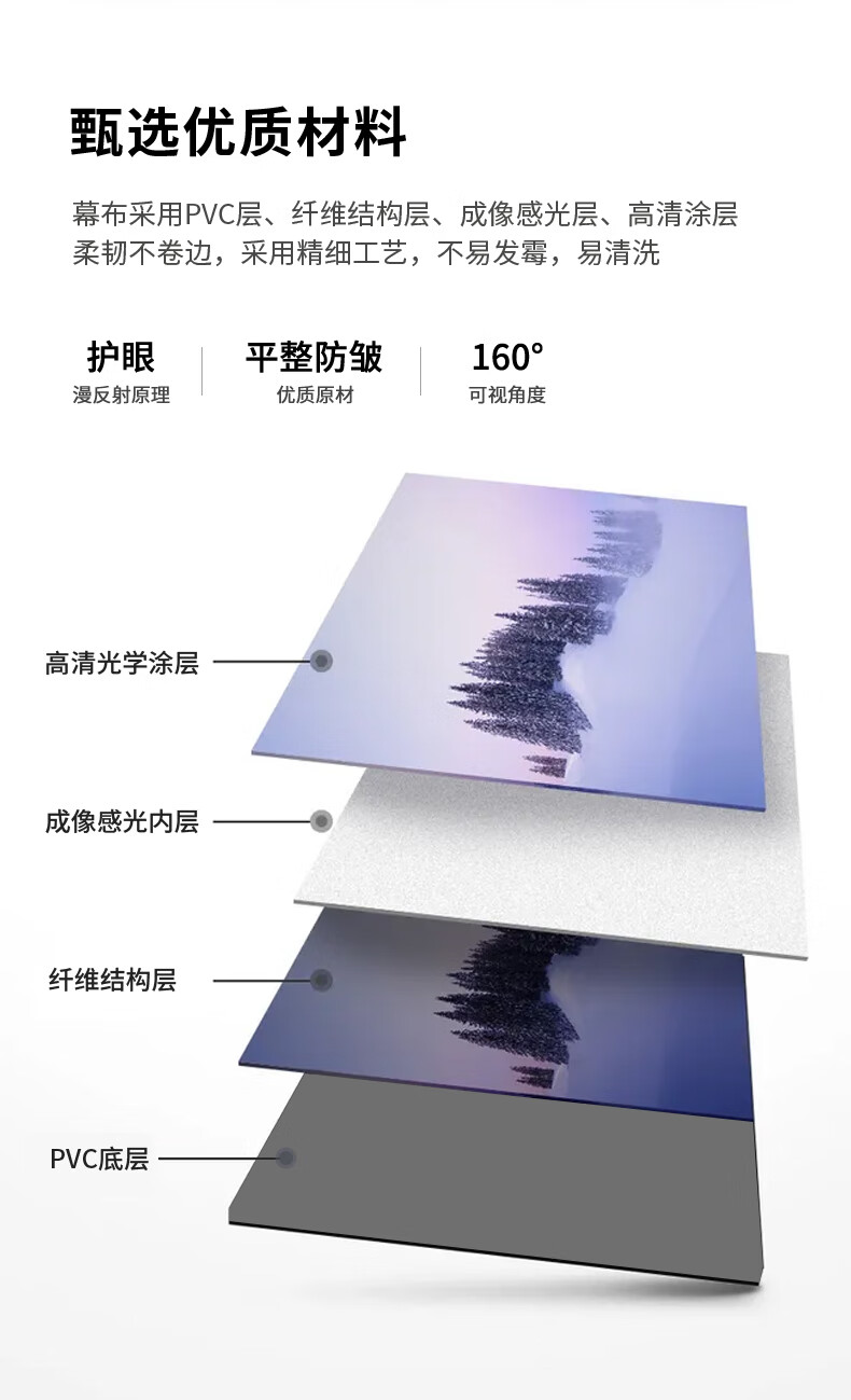 鲸米(JINGMI)4K手拉自锁投影幕布家用办公抗光高清壁挂电影激光简易便携金属白玻纤投影仪无需电源手动升降 银河系丨高清玻纤S5手拉幕 100英寸16:9