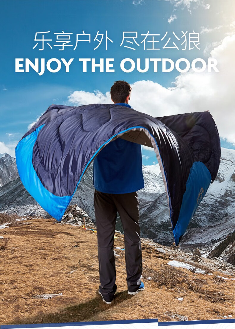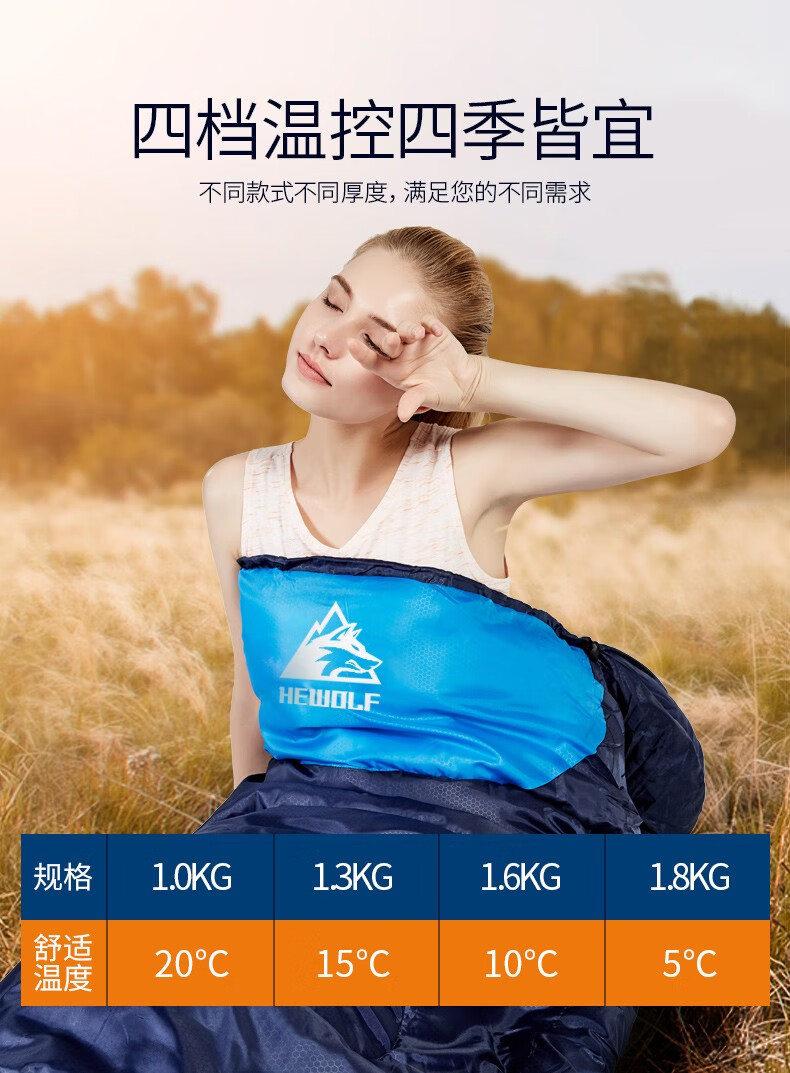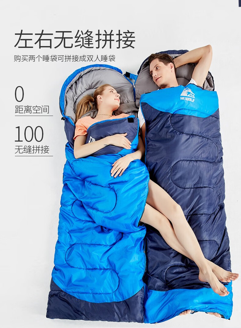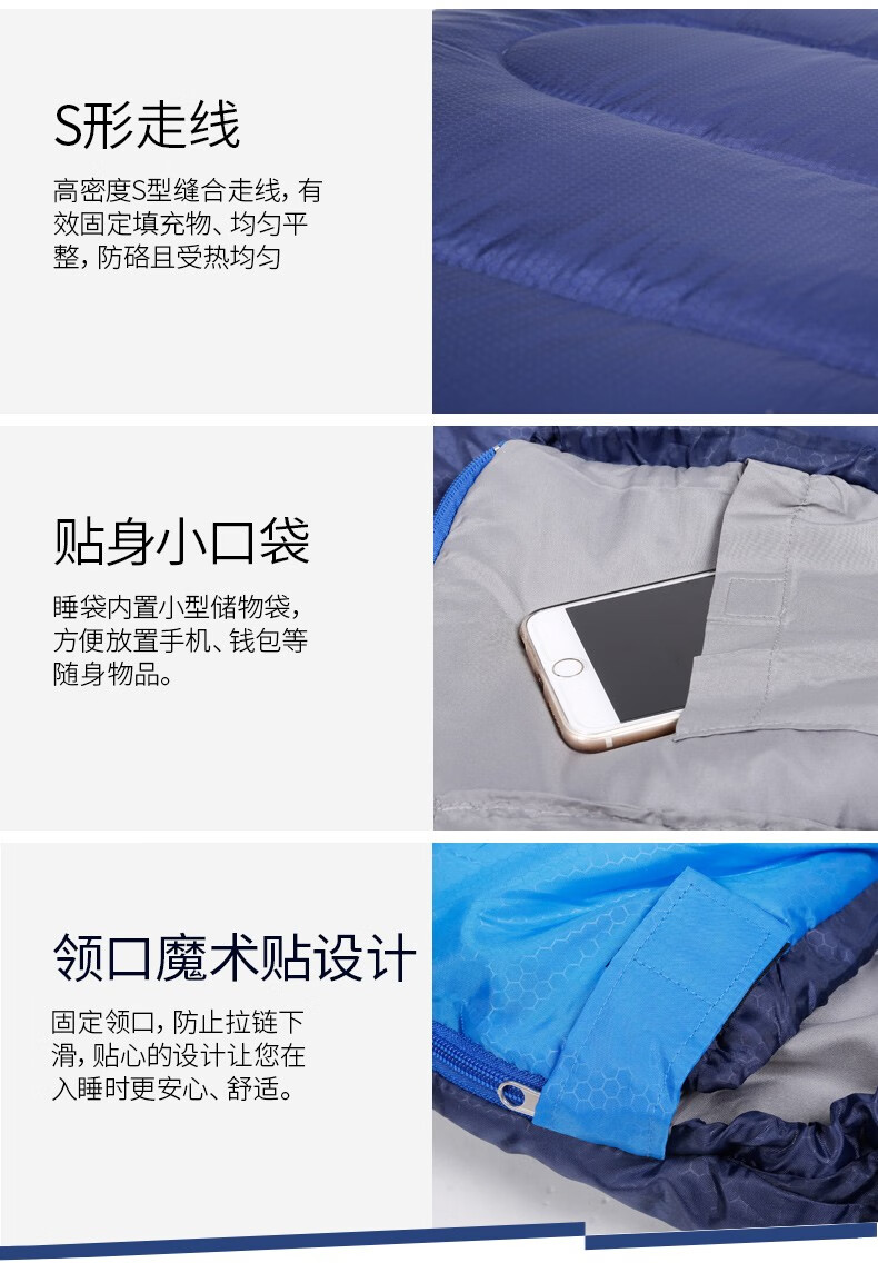 公狼睡袋冬季加厚防寒加宽单人成人秋冬天户外办公室午休加宽车载露营 中蓝色1.3kg一个