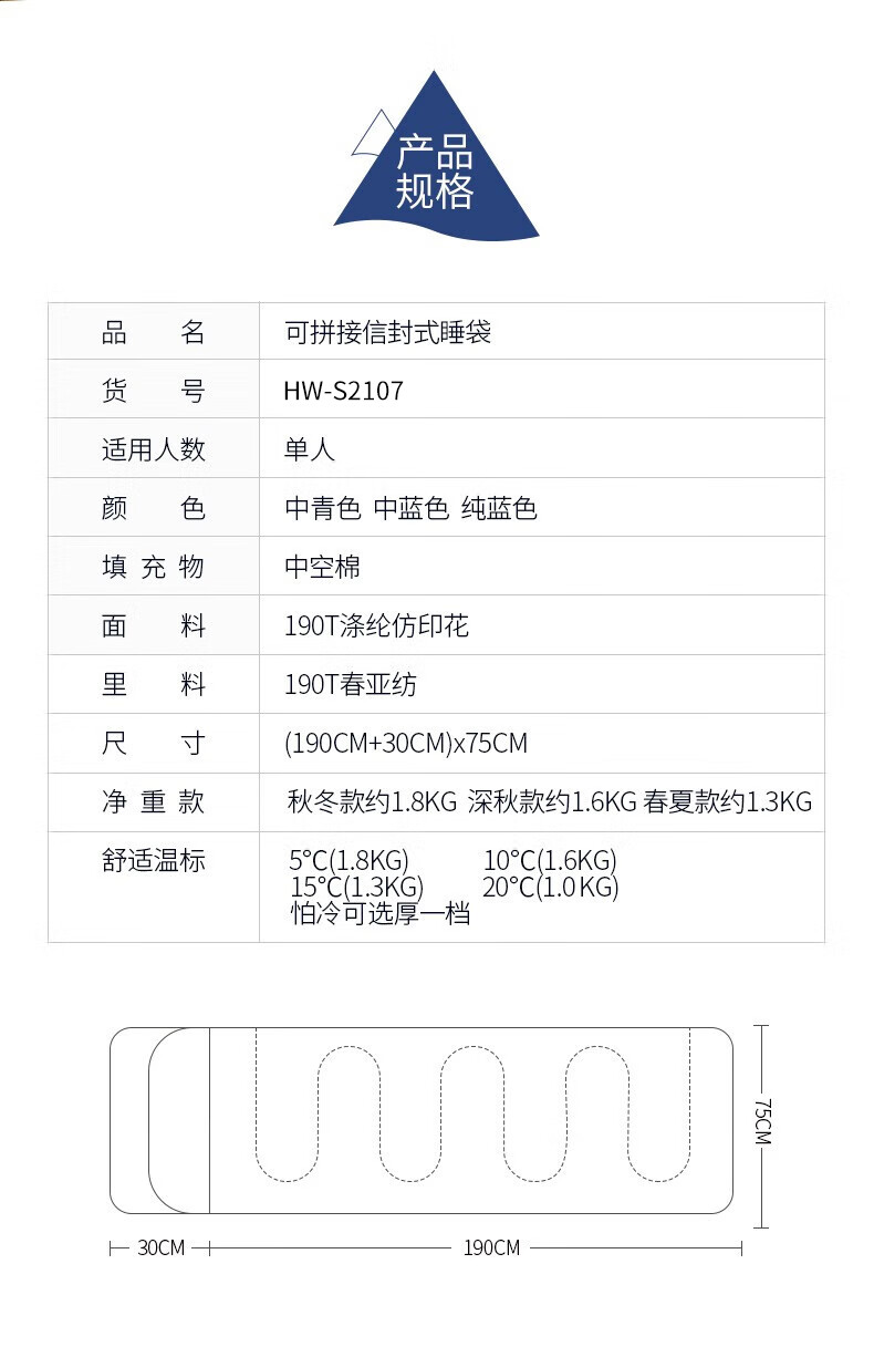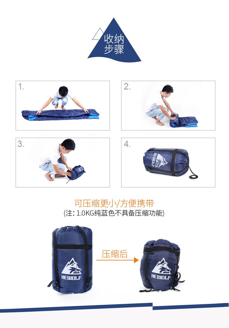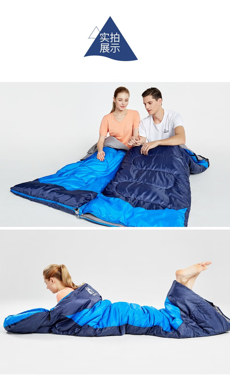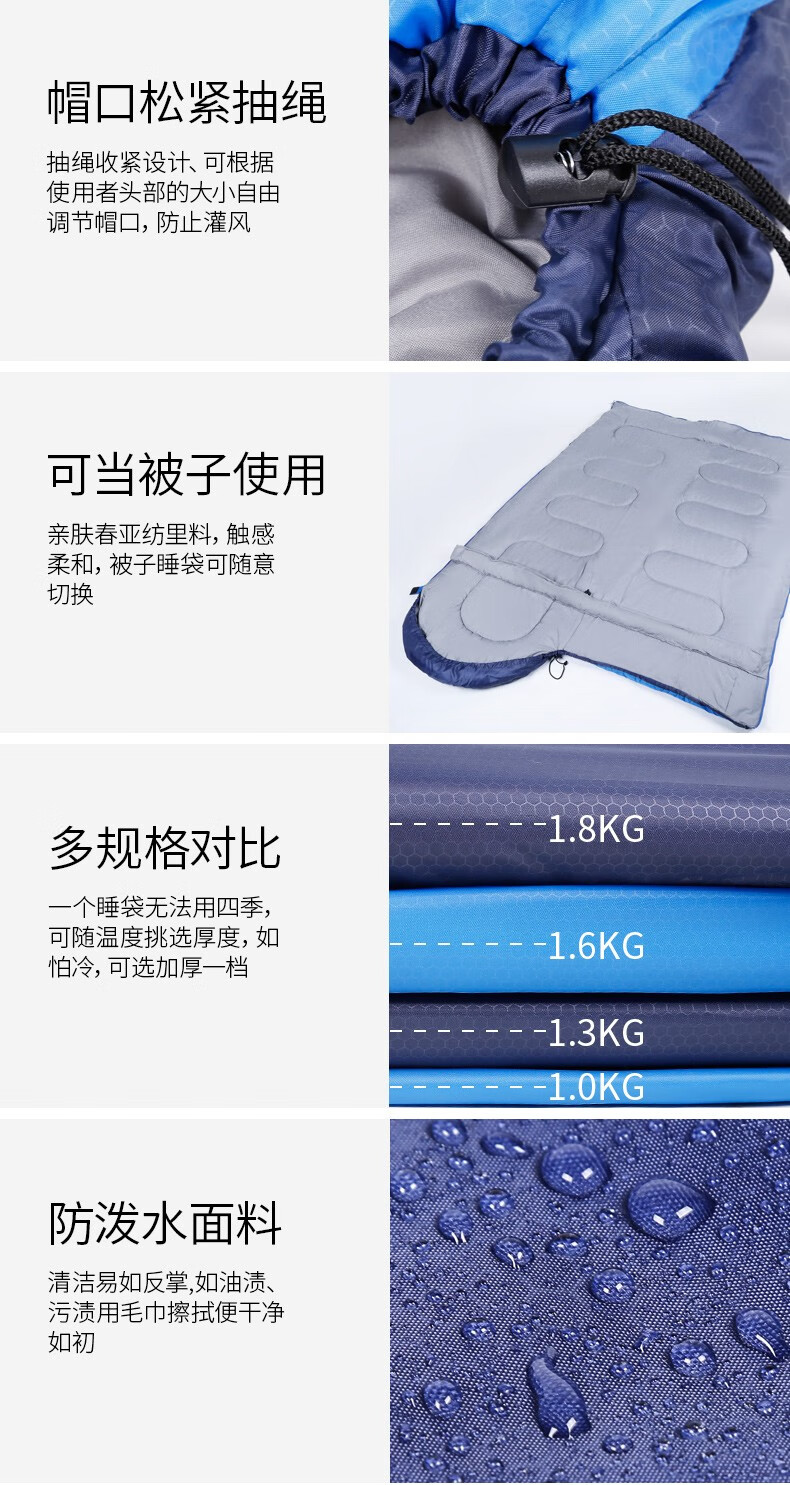 公狼睡袋冬季加厚防寒加宽单人成人秋冬天户外办公室午休加宽车载露营 中蓝色1.3kg一个