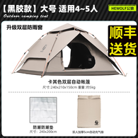 公狼帐篷户外防雨过夜露营自动速开折叠专业双层抗风防寒加厚冬季保暖 三层卡其4-5人黑胶+5cm气垫+防潮垫