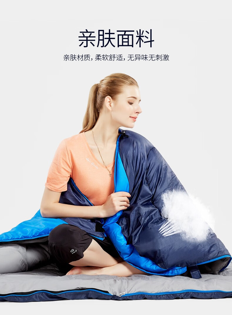 黑岩(BlackCrag) 并蒂莲系列 户外居家 双人信封羽绒 双人羽绒被600蓬白鸭绒 蓝色2500克充绒量