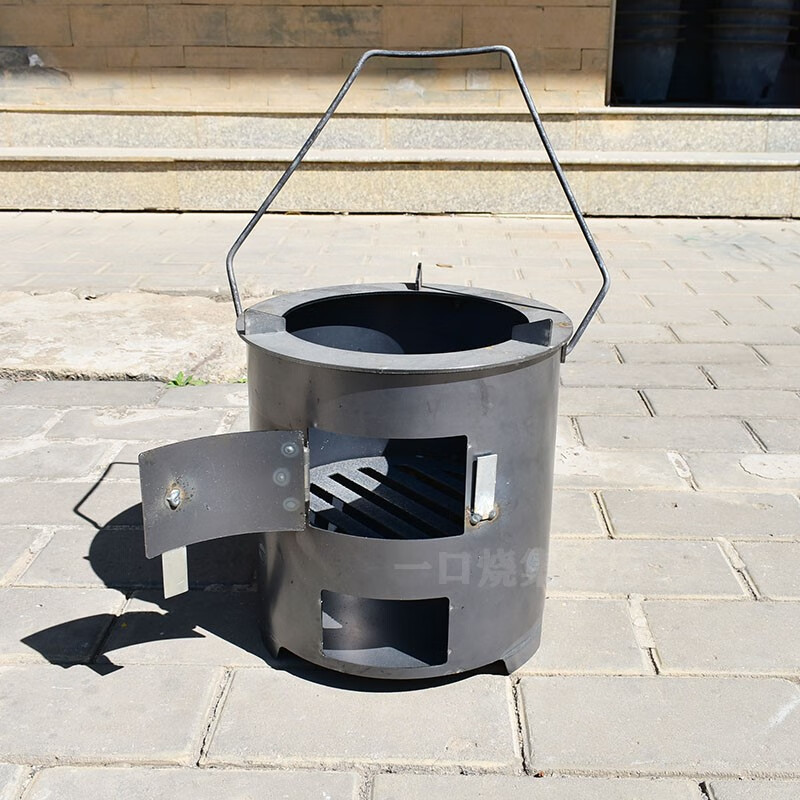 靠森(Kaooseen)户外柴火炉木炭炉子家用取暖炉加厚钢板野炊烧烤多功能引火点碳桶 大号便捷炉N