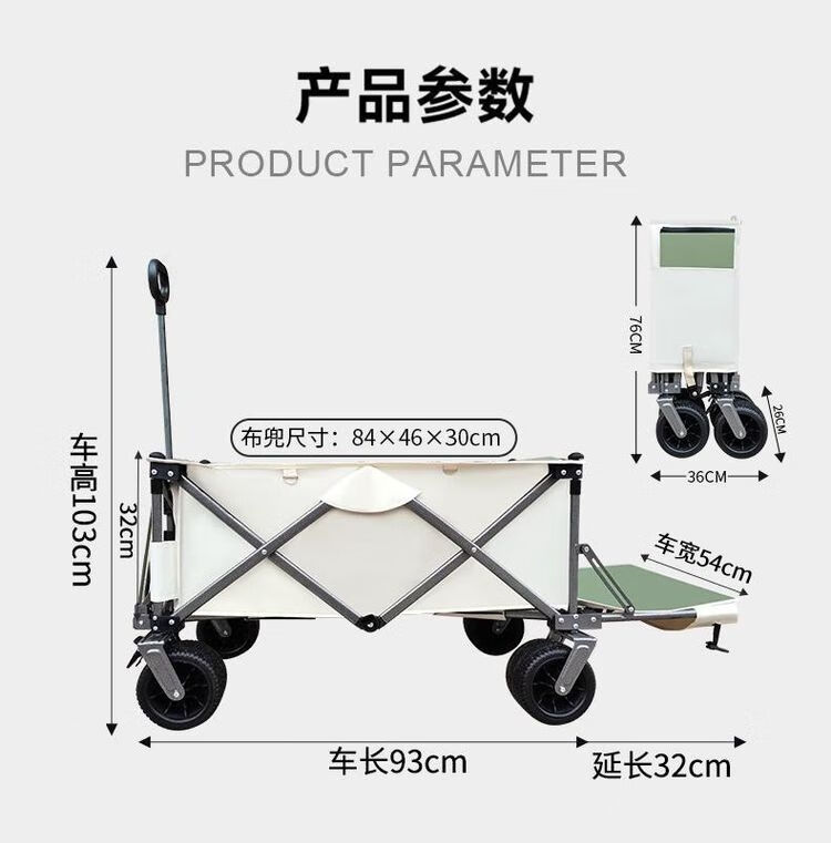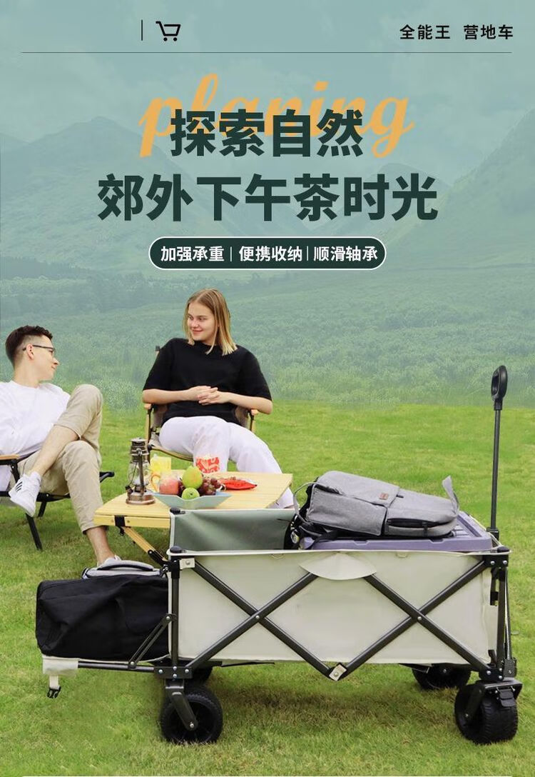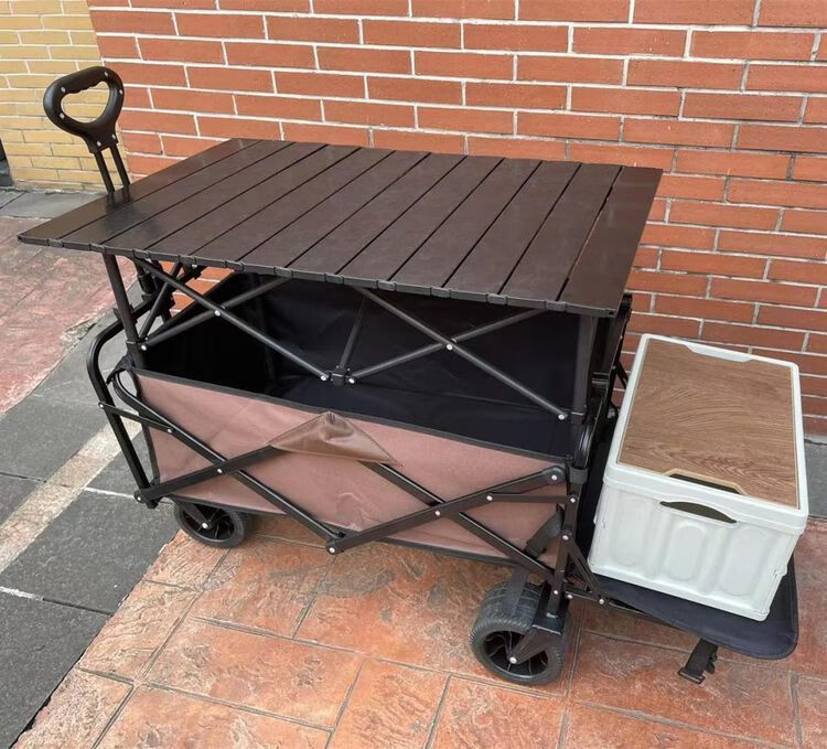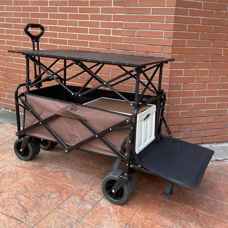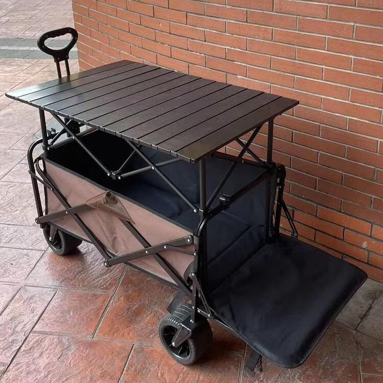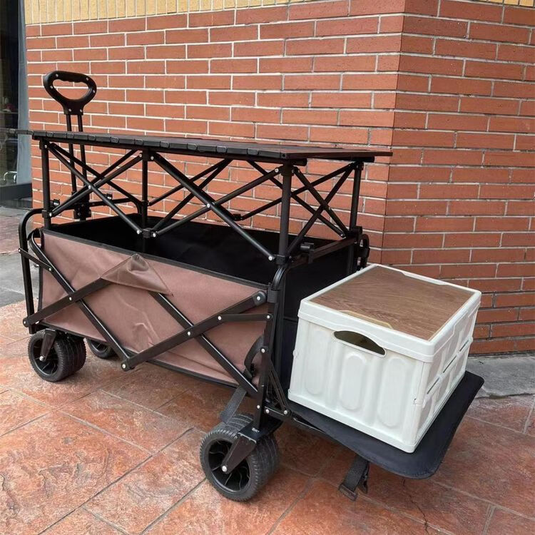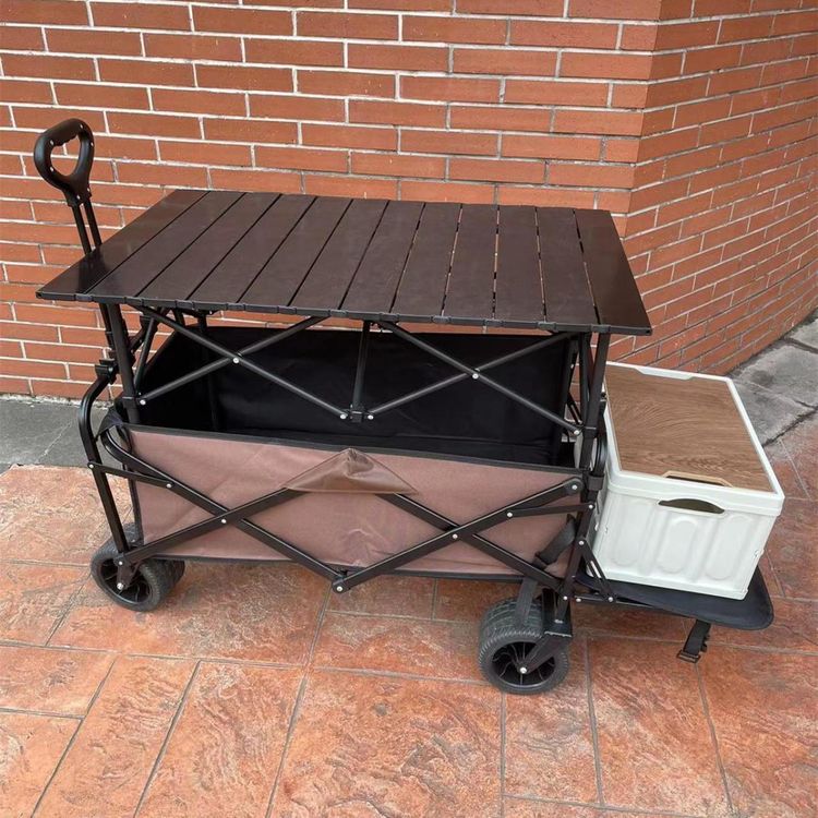 维诺亚摆摊露营小拉车可升降户外露营车折叠聚拢营地车手拉车夜市摆摊车 200L (展开容量)浅咖聚拢款摆摊车 120*60大桌板(黑色)