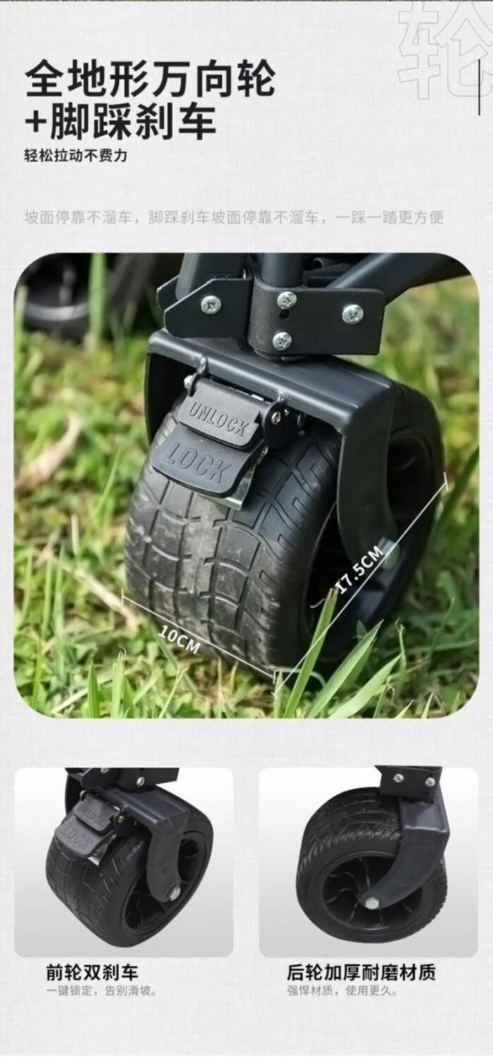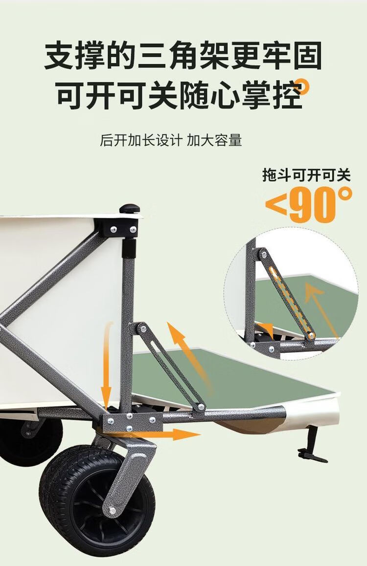 维诺亚【加长1.2米摆摊车】摆摊露营推车营地车户外折叠拖车大推车翻斗 1.2米拖斗车咖黑色+95黑色