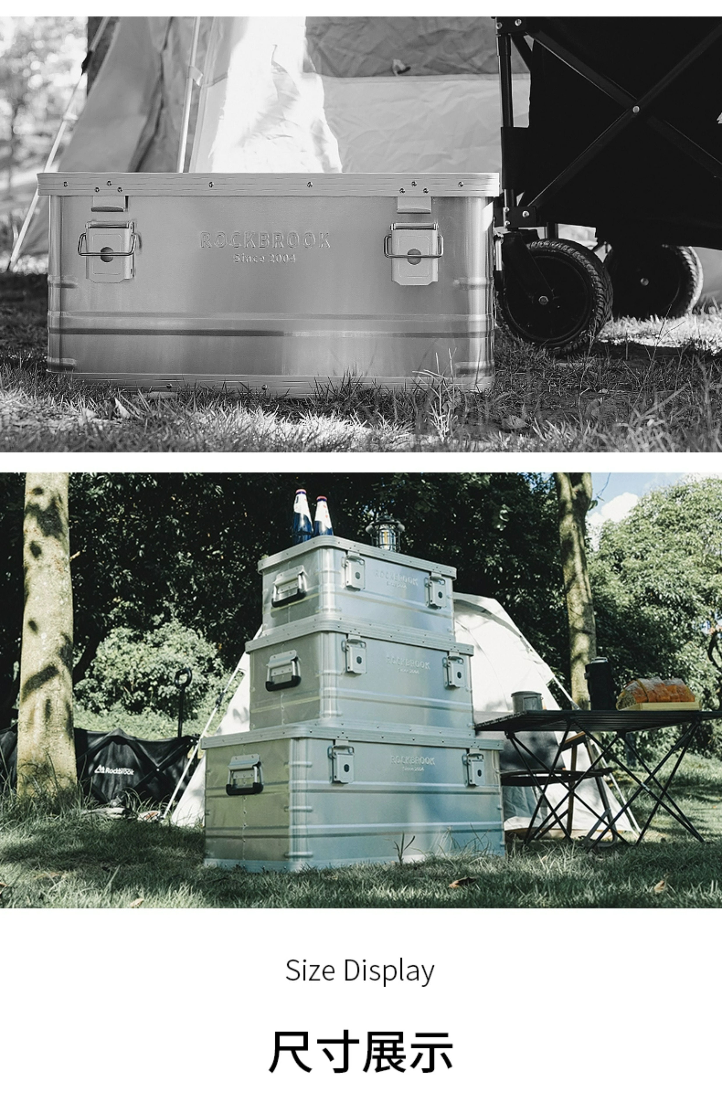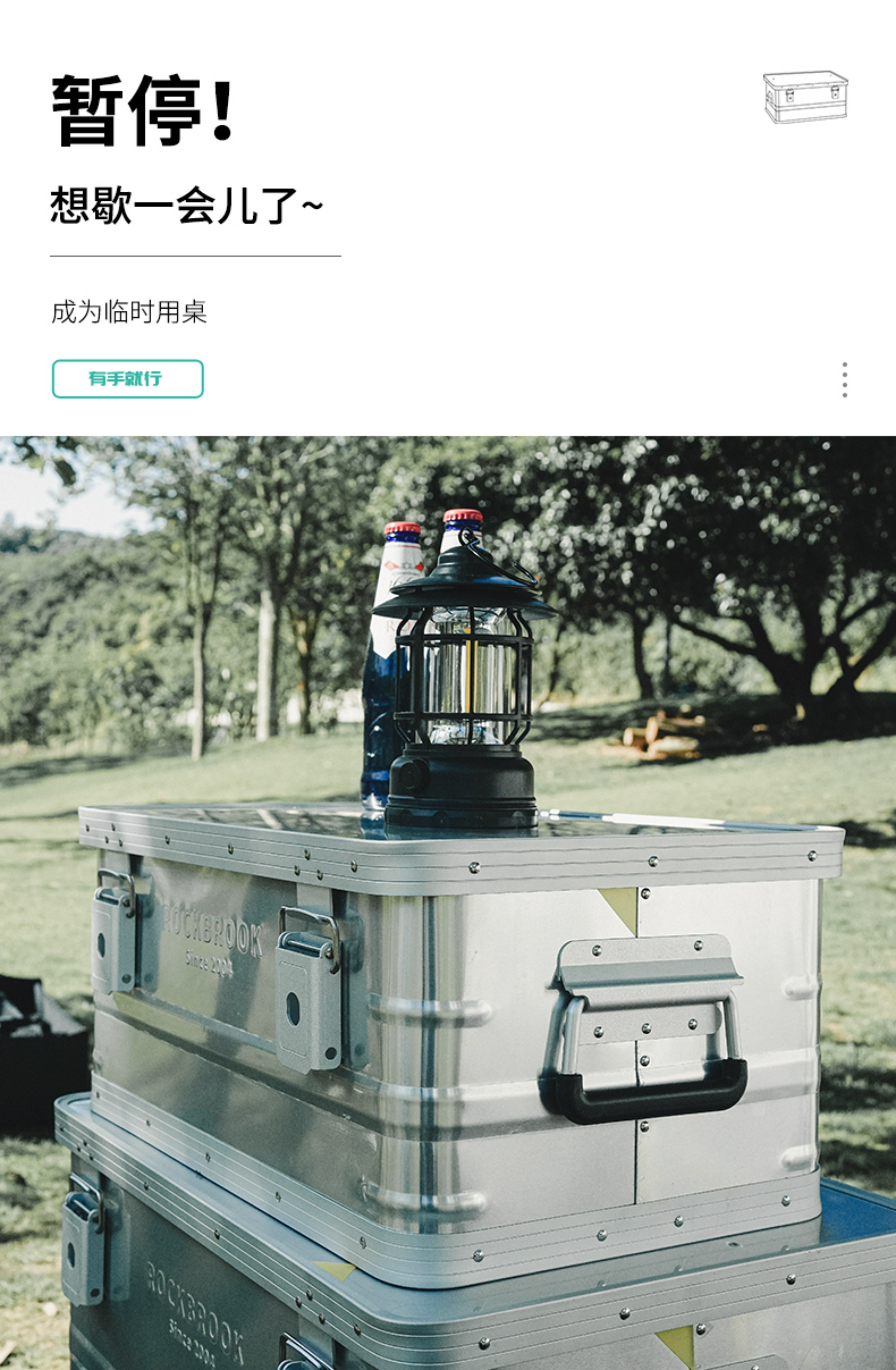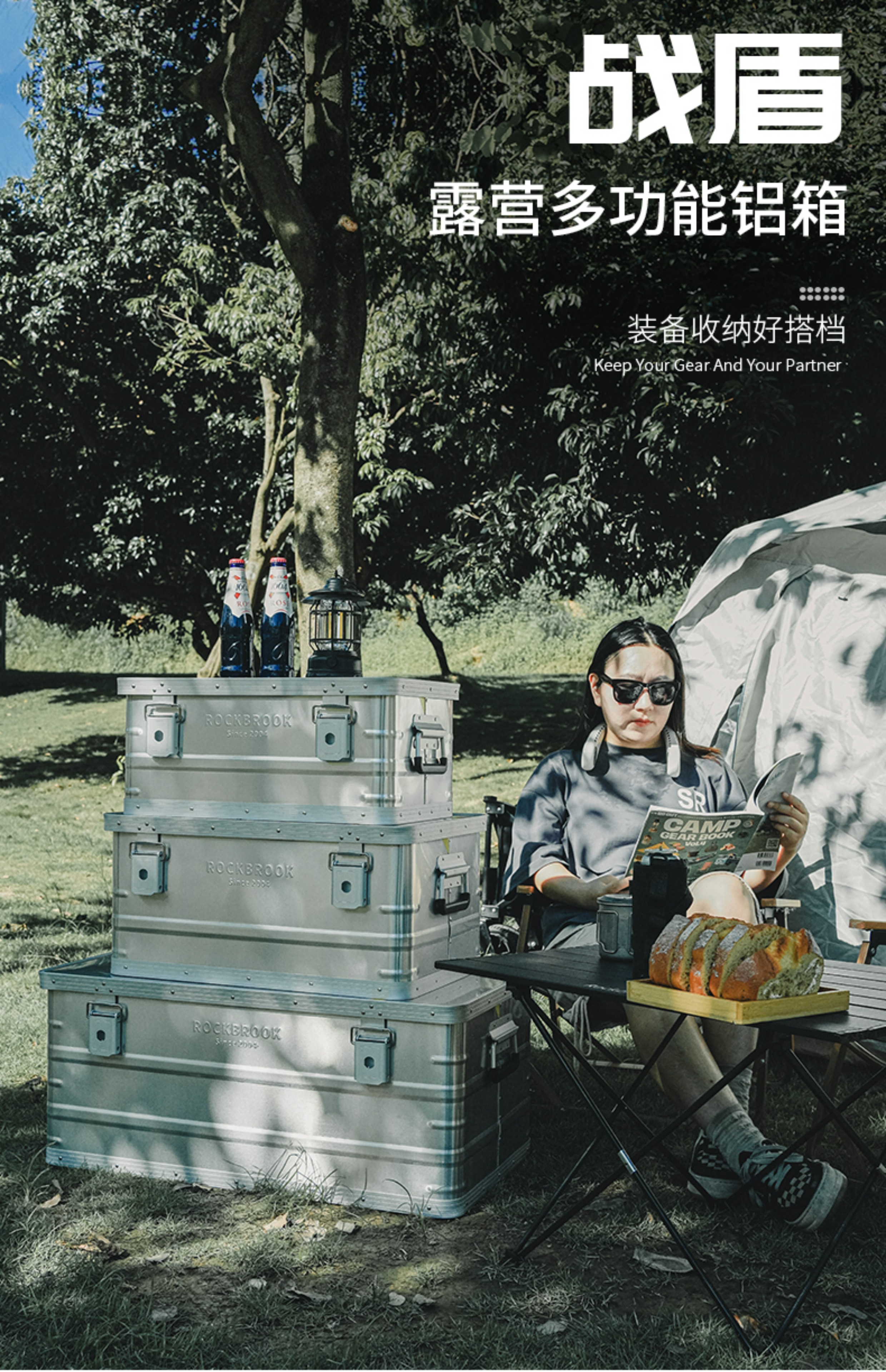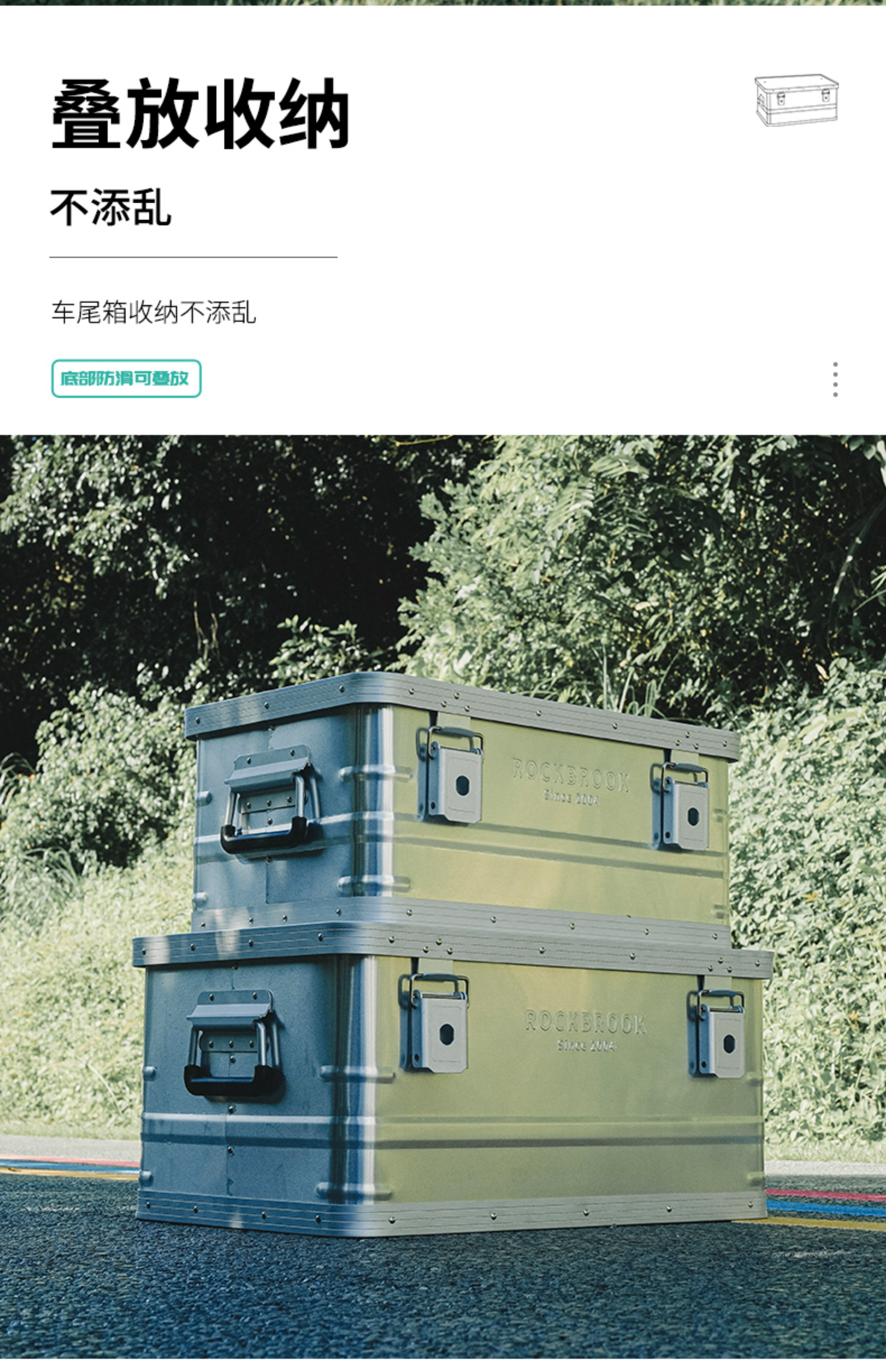 ROCKBROOK鹿布户外铝镁合金收纳箱车载防水整理箱露营桌面金属储物箱|战盾 战盾铝镁合金箱【50L】
