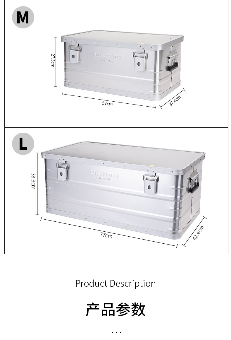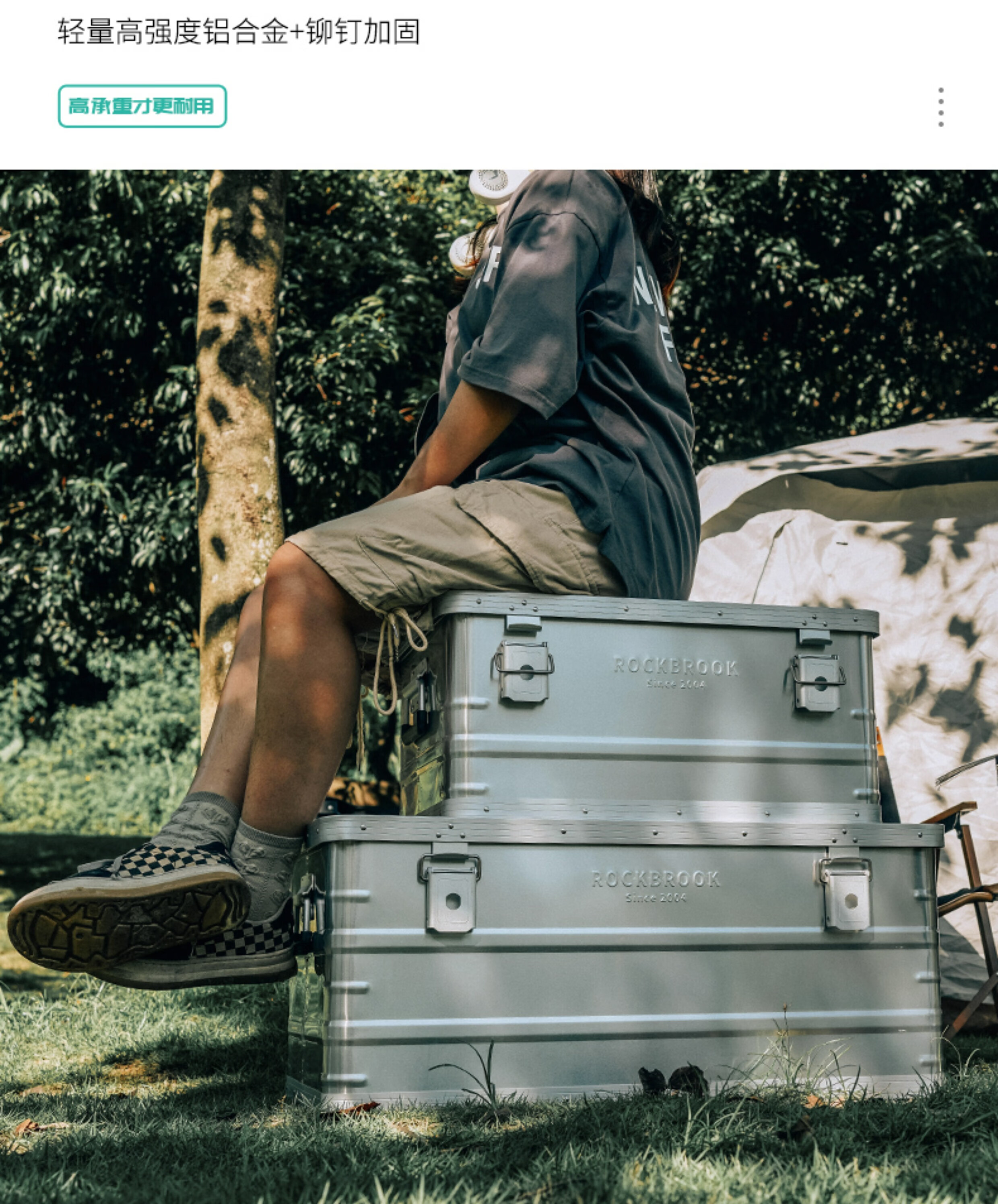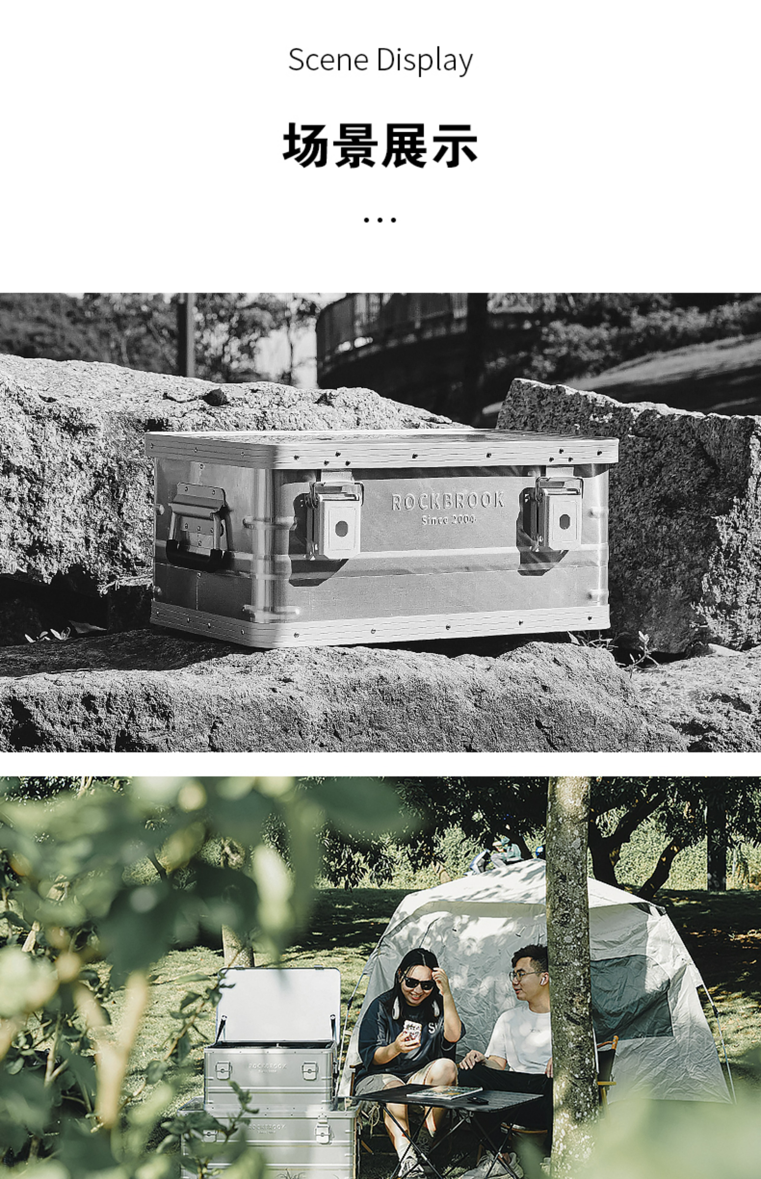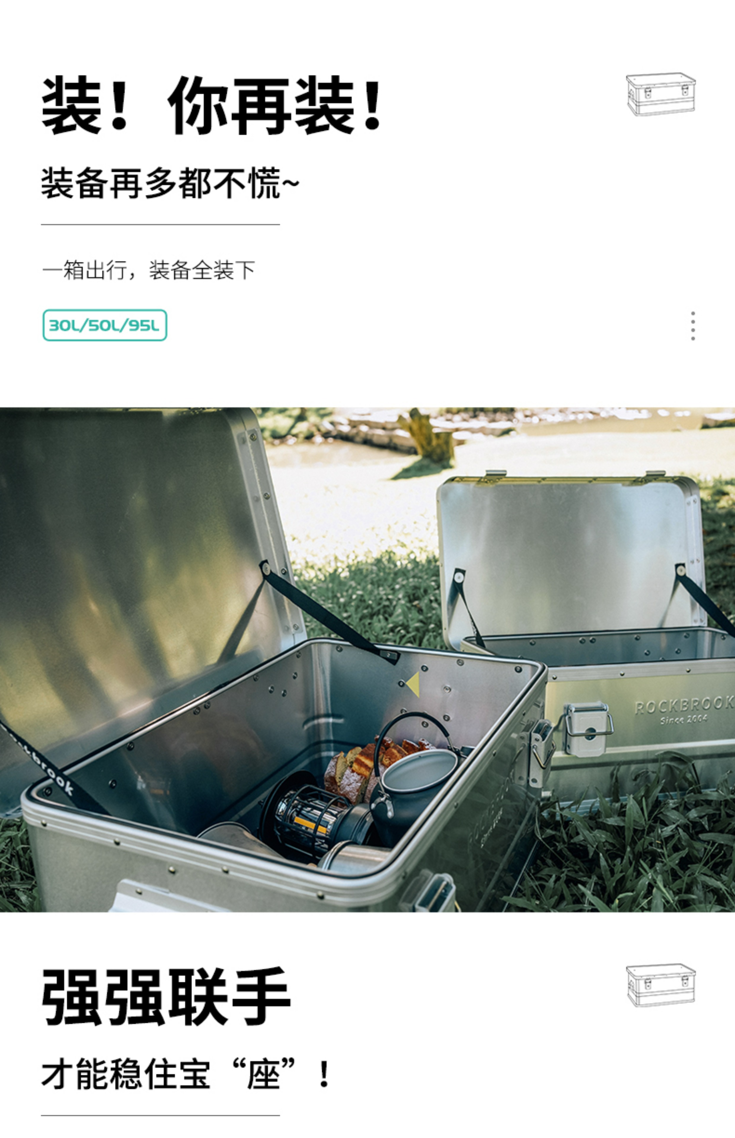 ROCKBROOK鹿布户外铝镁合金收纳箱车载防水整理箱露营桌面金属储物箱|战盾 战盾铝镁合金箱【50L】