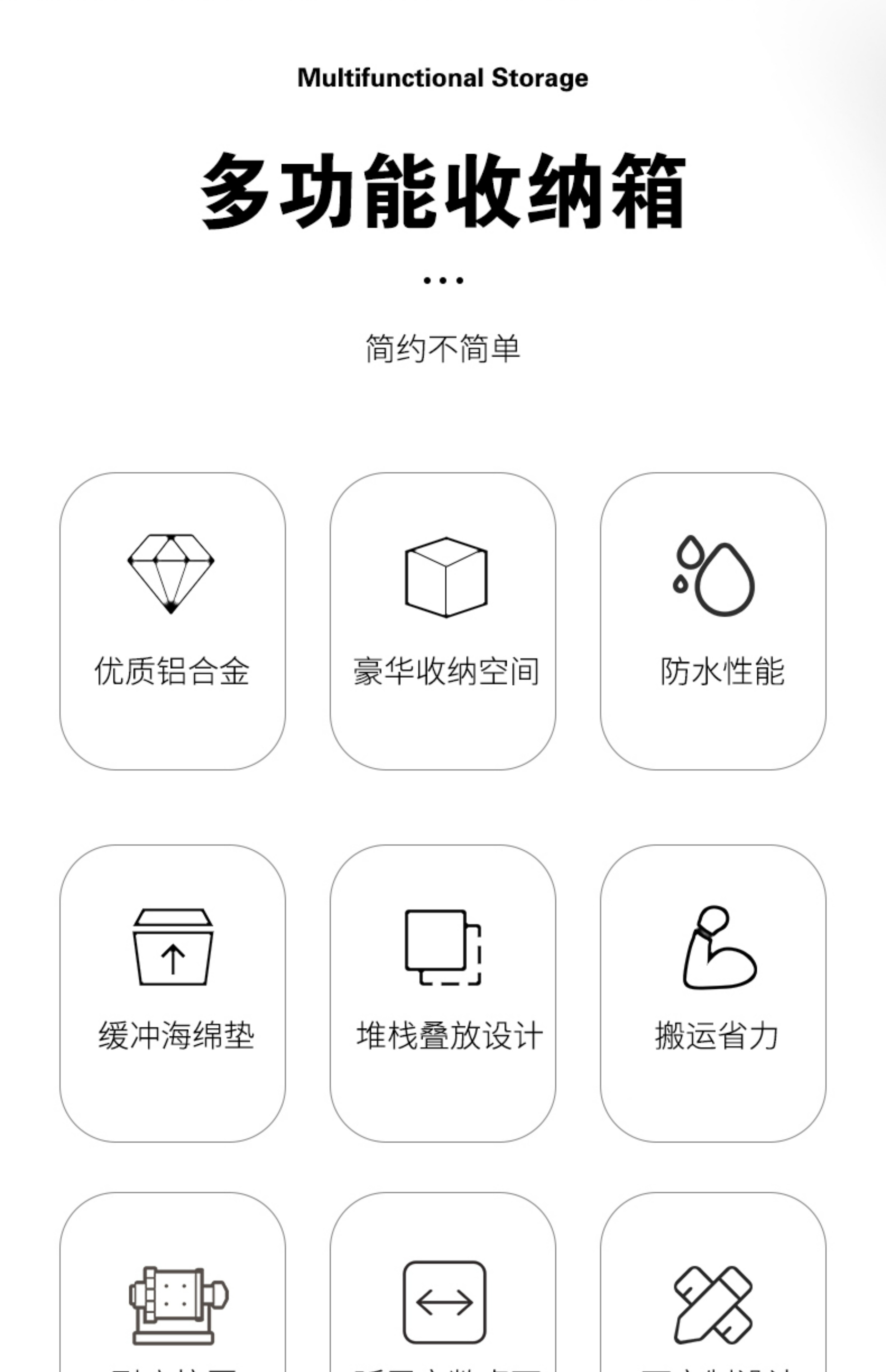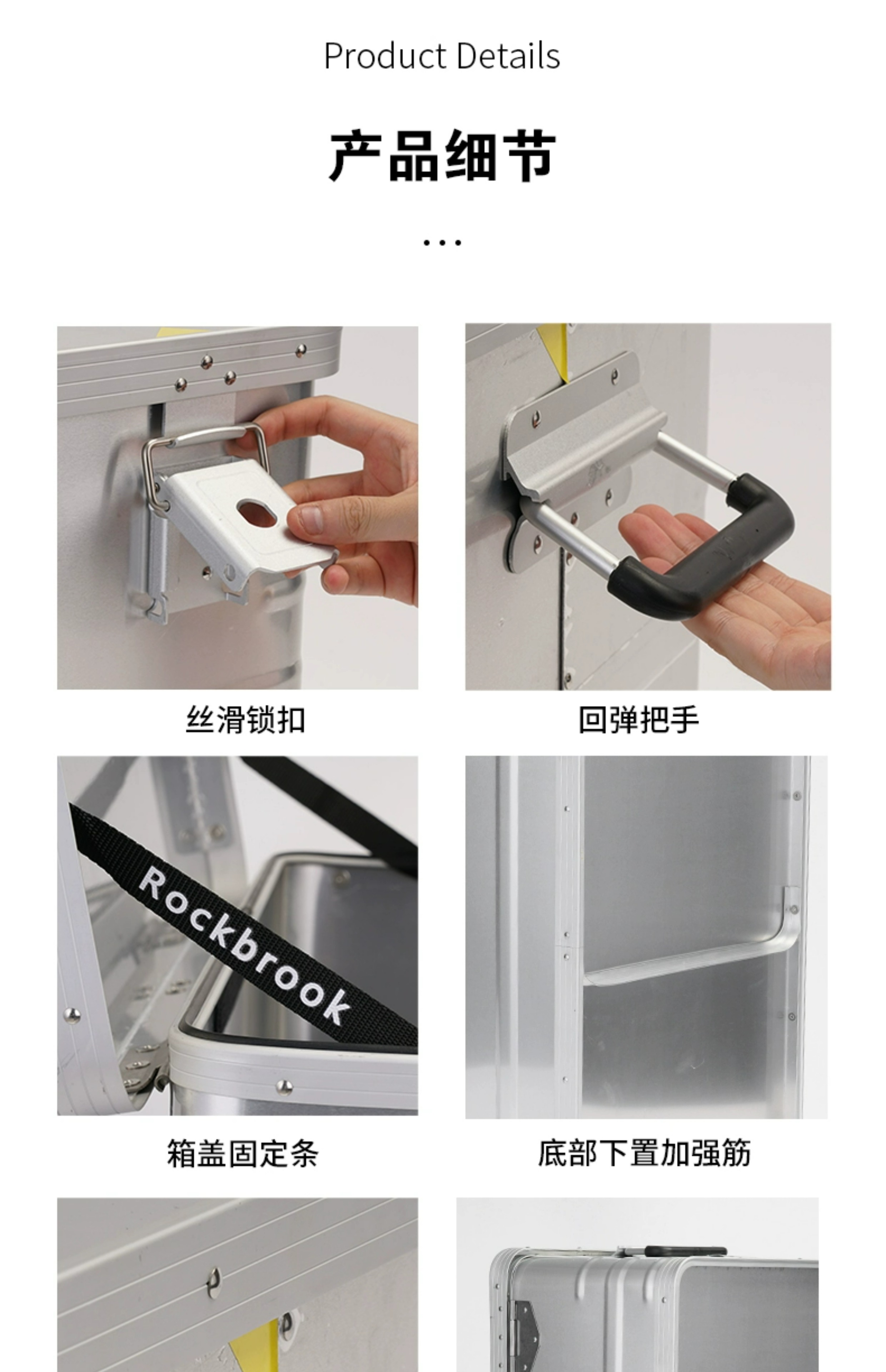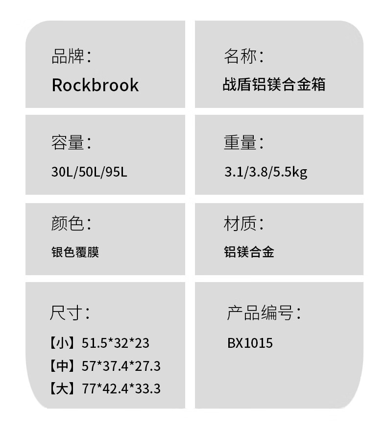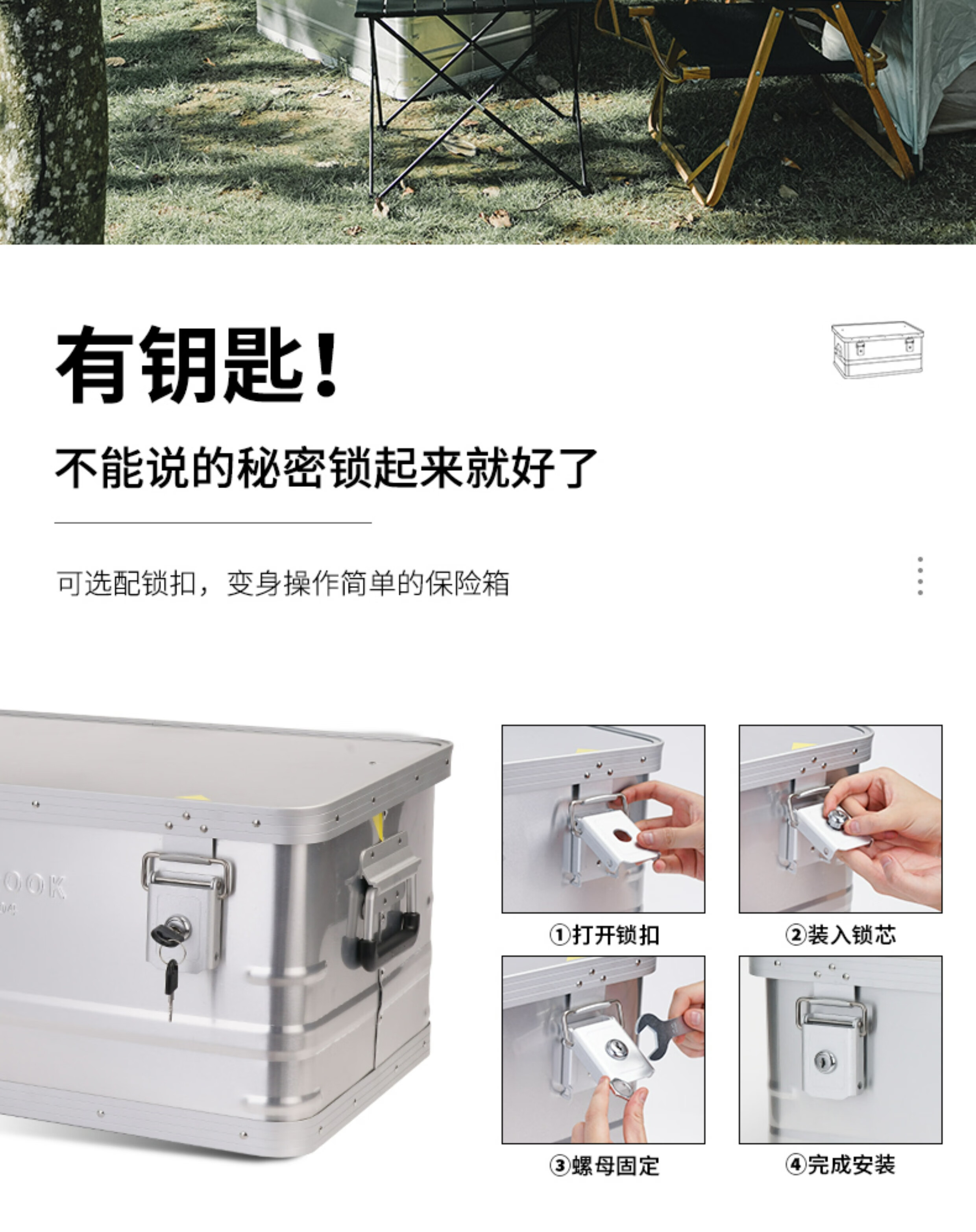 ROCKBROOK鹿布户外铝镁合金收纳箱车载防水整理箱露营桌面金属储物箱|战盾 战盾铝镁合金箱【50L】