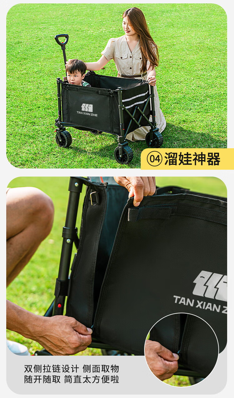 疆屿露营车野营户外折叠手推车野餐摆摊拖斗车儿童可躺聚拢营地车