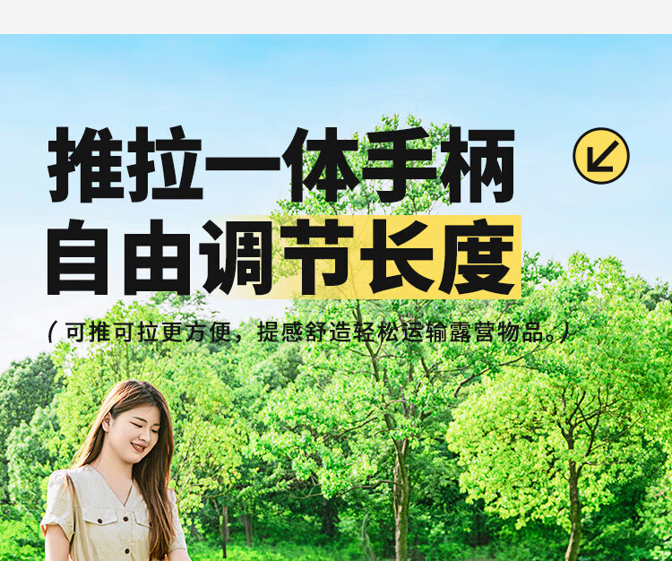 想买一个轻便一点的,家里的露营车很笨重。这款小推车非常小巧,女生一个人也能轻松提走。折叠方便,不占地方,空间还不错,感觉够用了。拉着很有质感,品质刚刚的。轮子顺滑无噪音,非常值得推荐