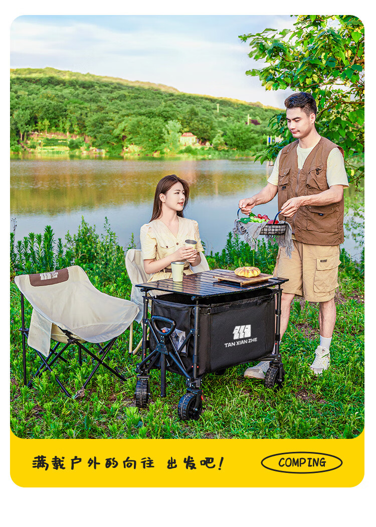 探险者(TAN XIAN ZHE)露营车折叠露营推车超市购物小推车户外露营旅行取快递小拖车 便携/越野轮(约6.8KG)