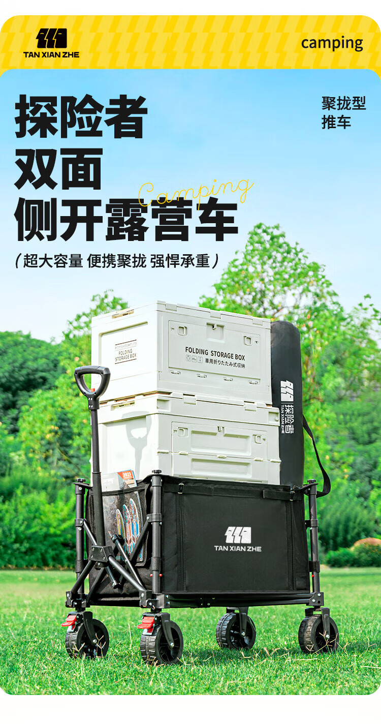 探险者(TAN XIAN ZHE)旅行车露营车儿童可睡觉聚拢型露营车四向聚拢车大容量行李车 300L曜石黑-双刹坦克轮