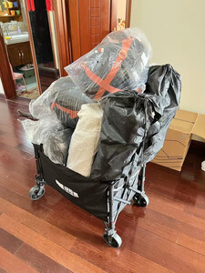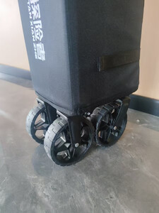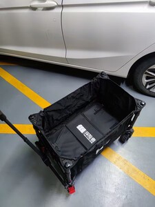 轮子可拆卸,推车不含轮的重量只有4.5kg。收到的时候很小巧,展开后容量还非常大,聚拢式的设计,折叠后随便放在后备箱,一点也不占空间,可以随时使用。质感很高,大牌的就是不一样