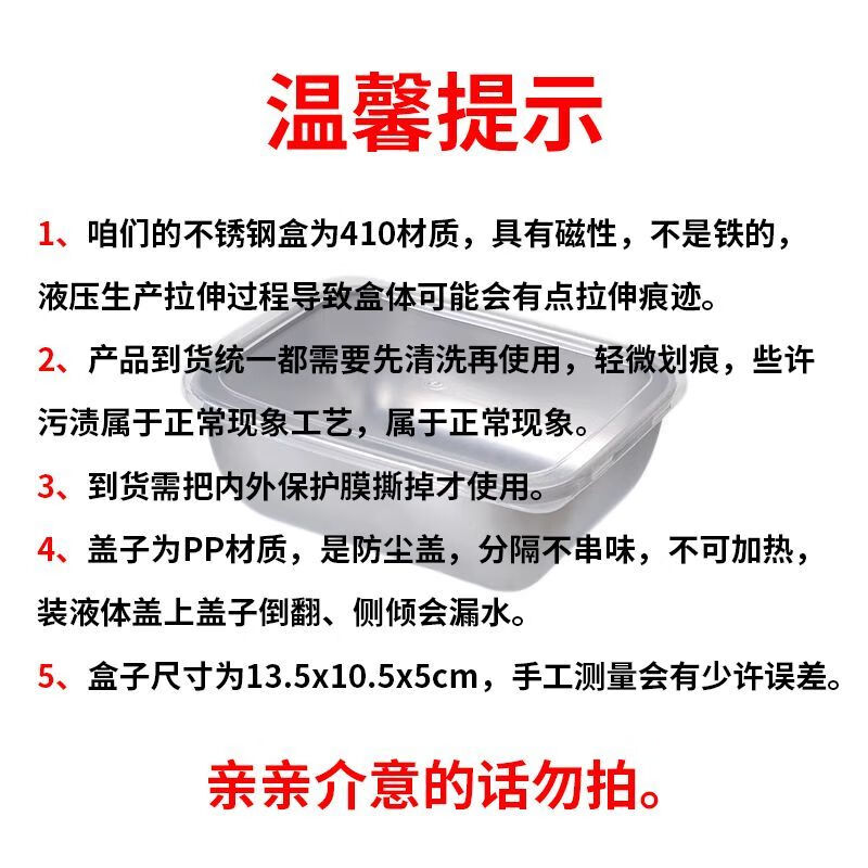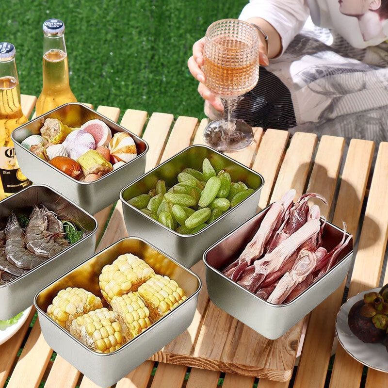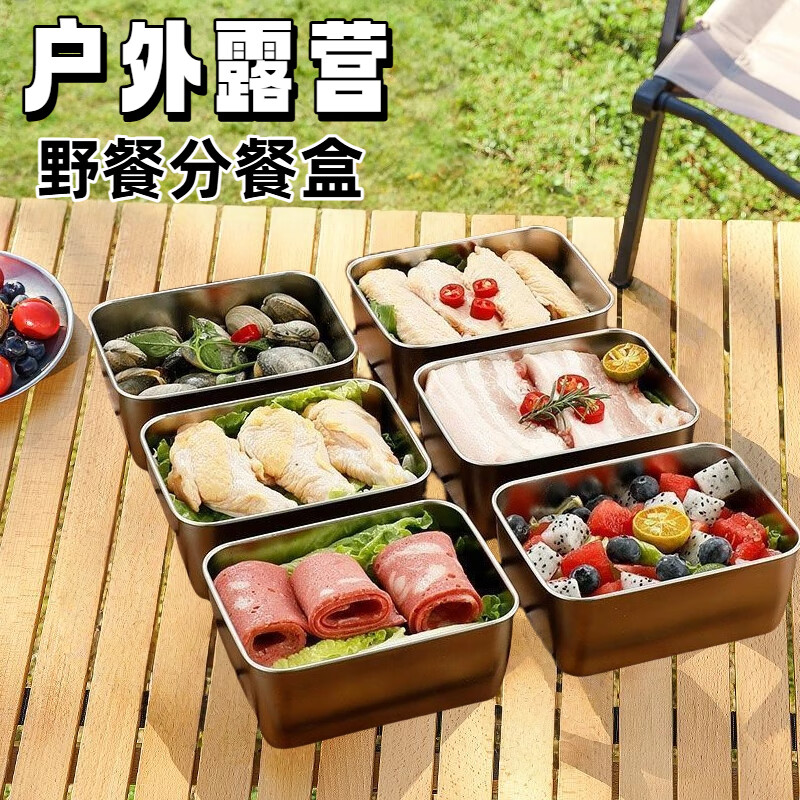 户外烧烤露营餐具小餐盒打饭必备食物410分装盒野餐盒火锅备菜盒 14cmx11cmx4cm【带盖6个装】