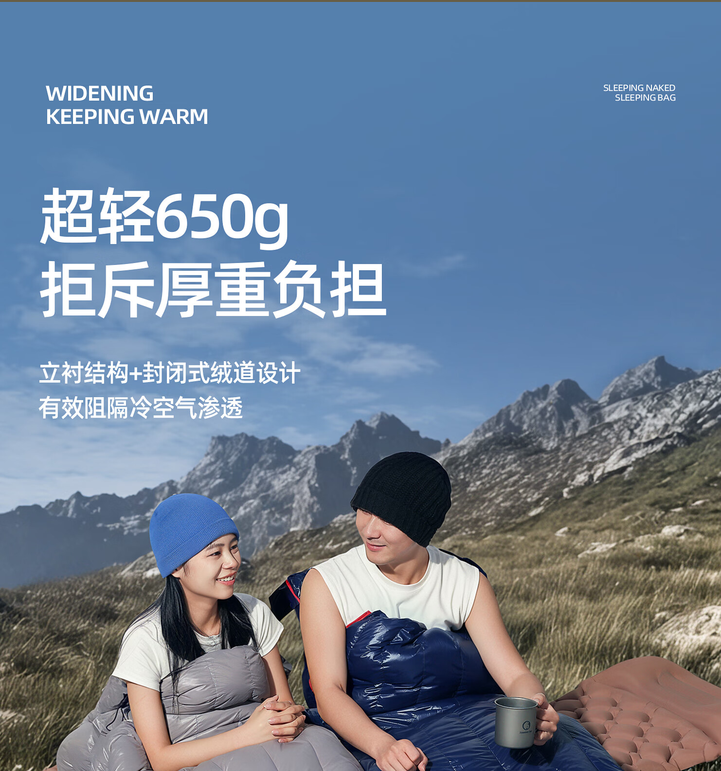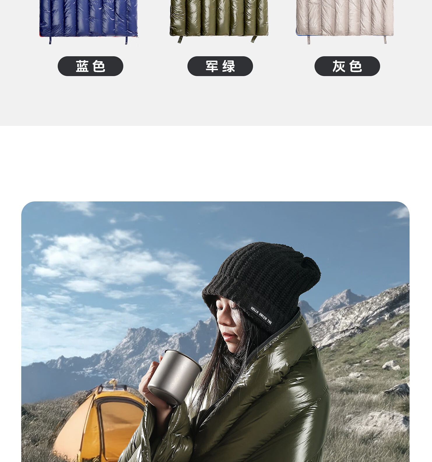 露营带上它太对了!蓬松羽绒蓄热强,可当被子,温暖加倍。信封款设计让空间充裕,随意活动不受限,尽享舒适露营时光 。👍🥰😊👍🥰😊