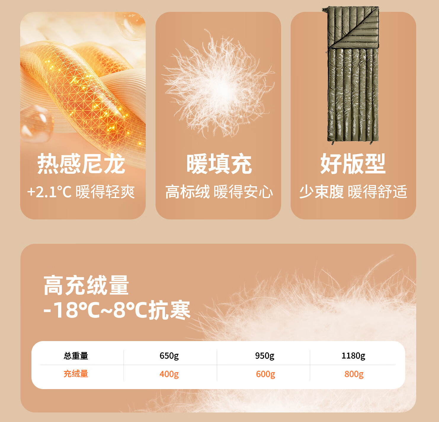 羽绒睡袋很轻巧 不跑绒 细节做得很到位 拉链丝滑 颜色也很好看 收纳起来很小巧方便携带 搭配帐篷颜值爆表👍🥰😊👍😁👍🥰😊👍😁