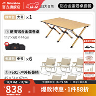 挪客Naturehike星简铝合金蛋卷桌户外露营野营便携式轻量化折叠桌子 6人聚会(大号桌+中号椅)