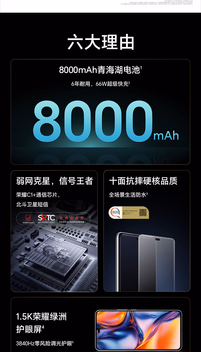 荣耀(HONOR)Power 8000mAh青海湖电池 自研C1+芯片 十面抗摔 AI 5G新款手机 幻夜黑 12GB+256GB