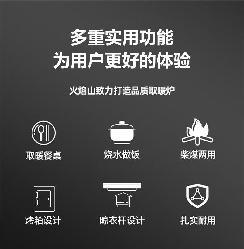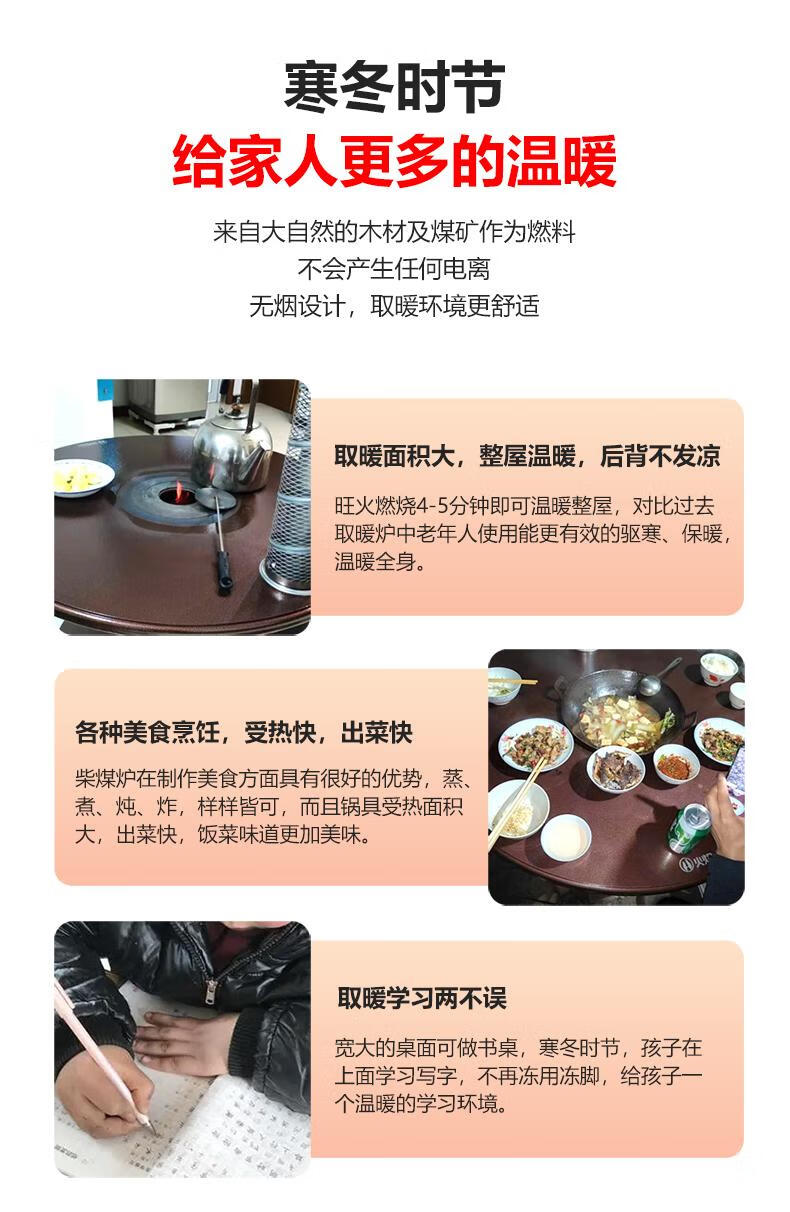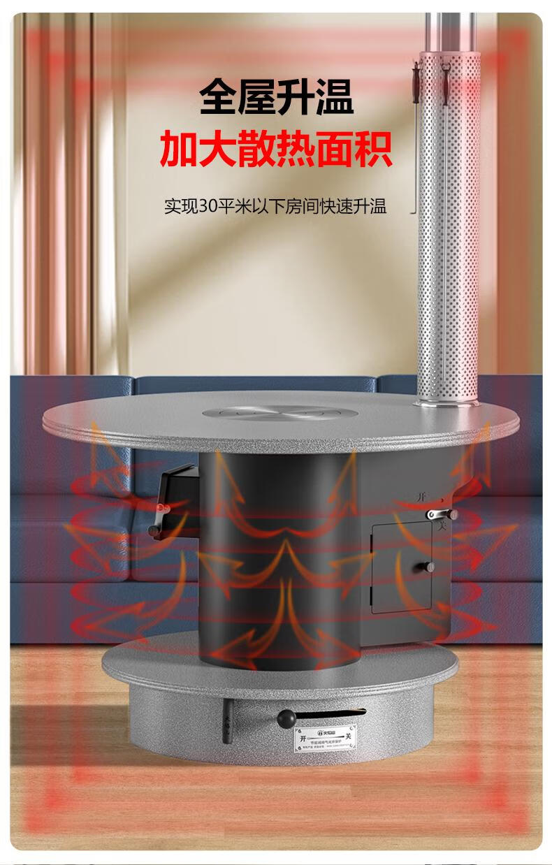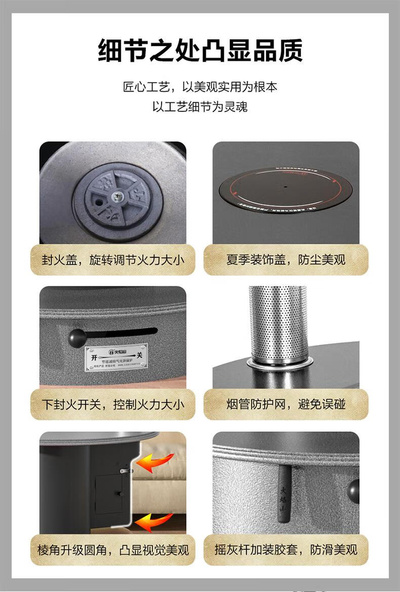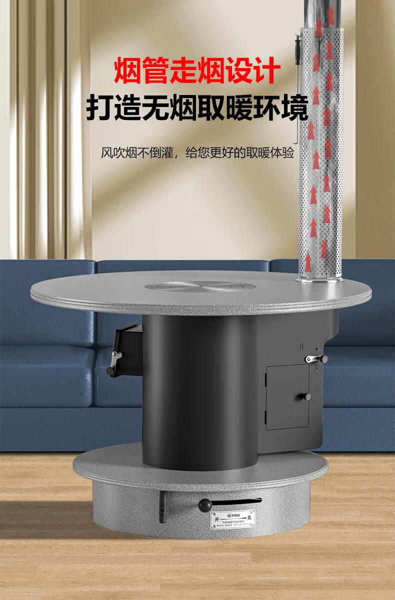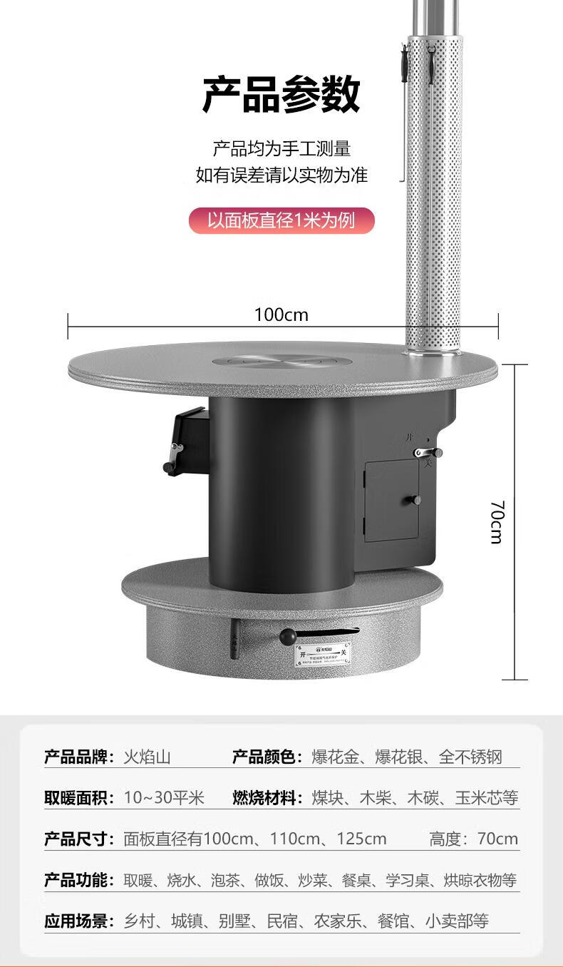 火焰山125圆柴煤两用烤火炉家用取暖炉家用室内无烟火炉取暖家用 【玫瑰金-烧煤款-钢板面板】 125cm*125cm