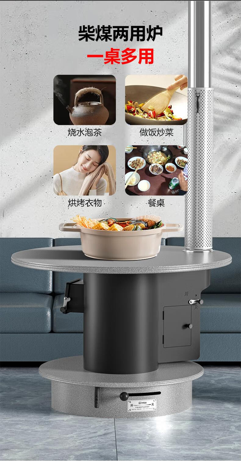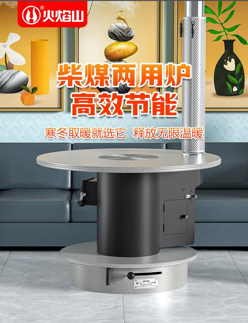 火焰山贵州遵义茶几取暖柴煤两用汽化炉加厚柴火室内农村家用 140X80岩板茶几柴煤两用